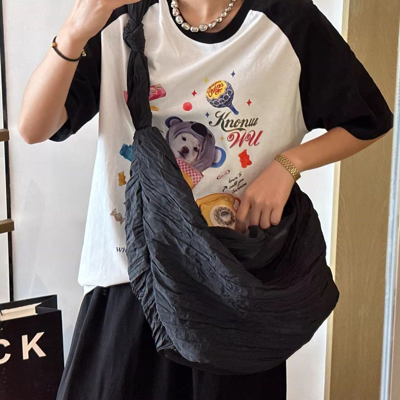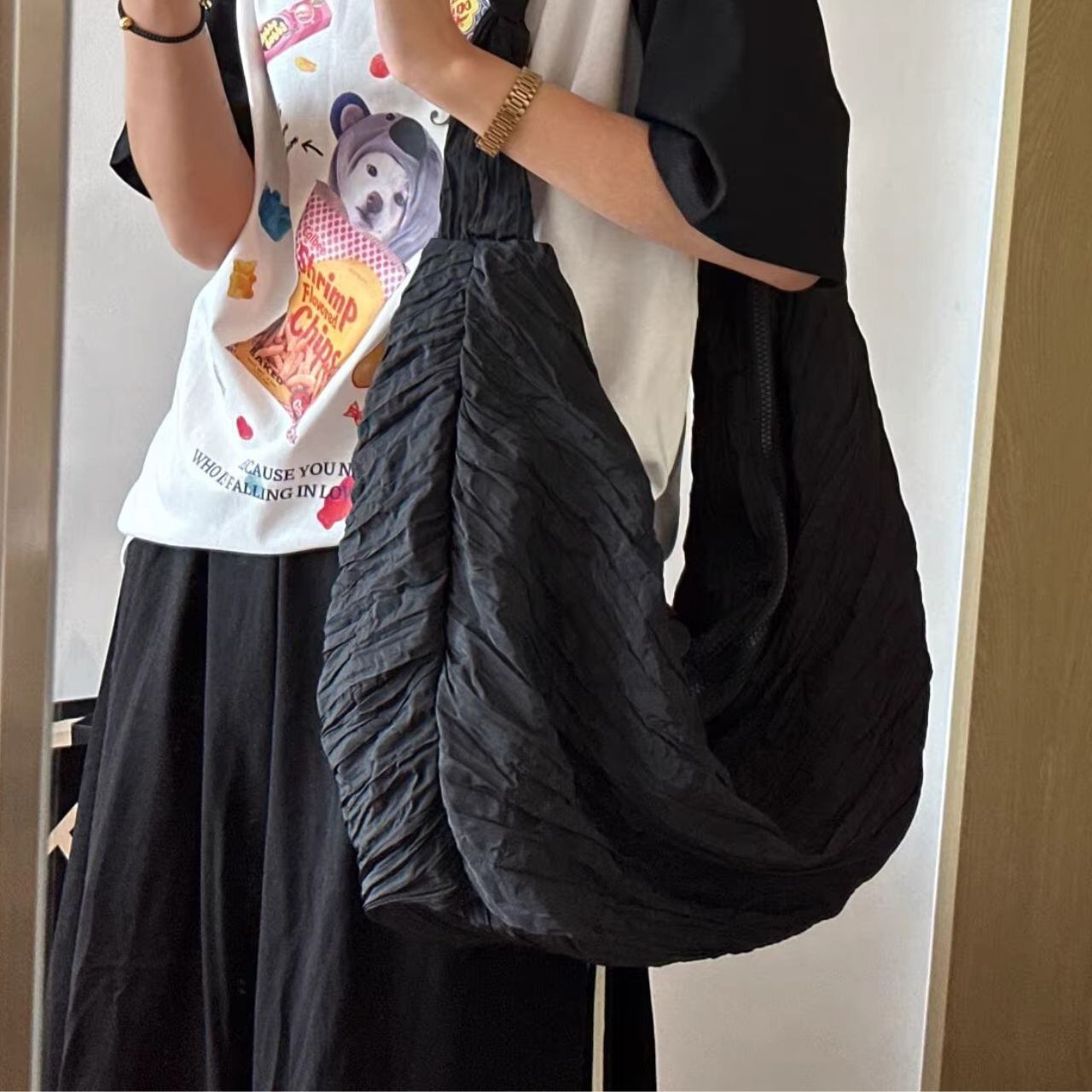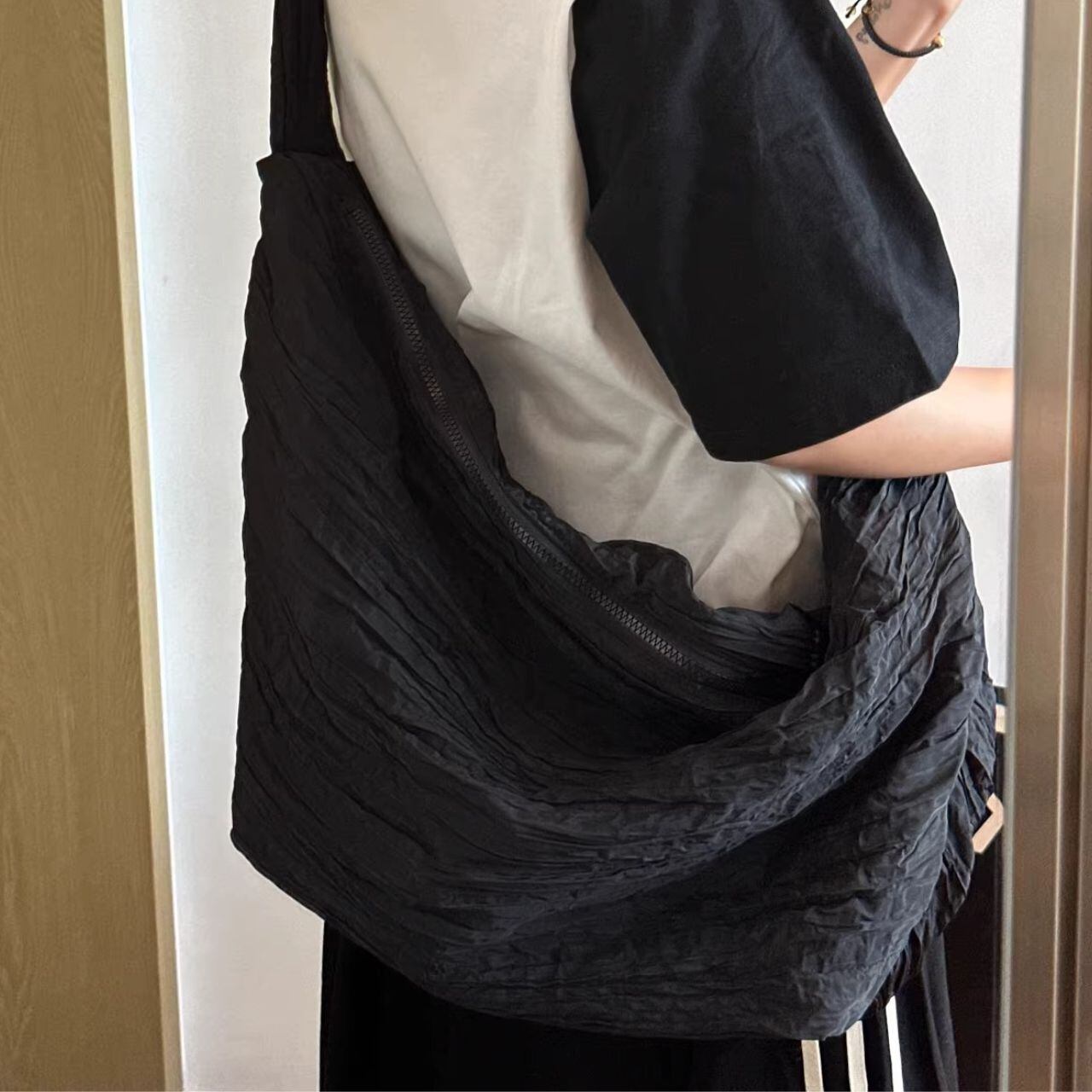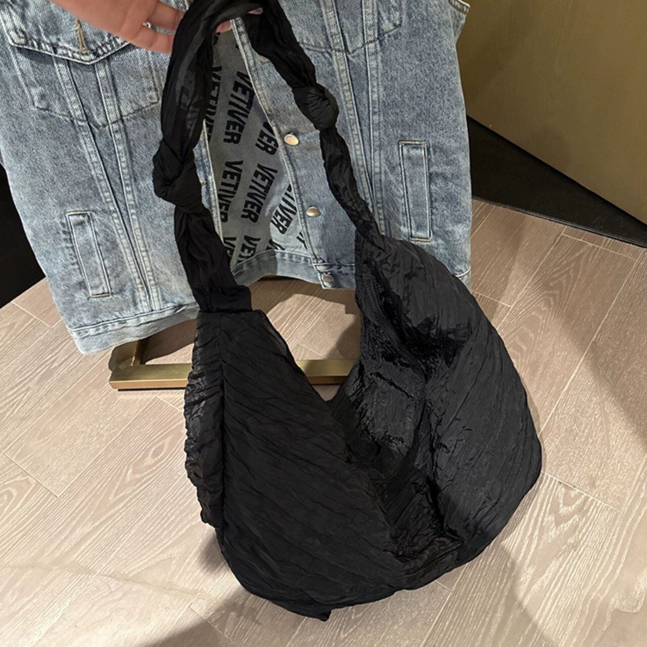 ワンショルダータイプの半月型バッグは、洗練されたデザインと実用性を兼ね備えています。