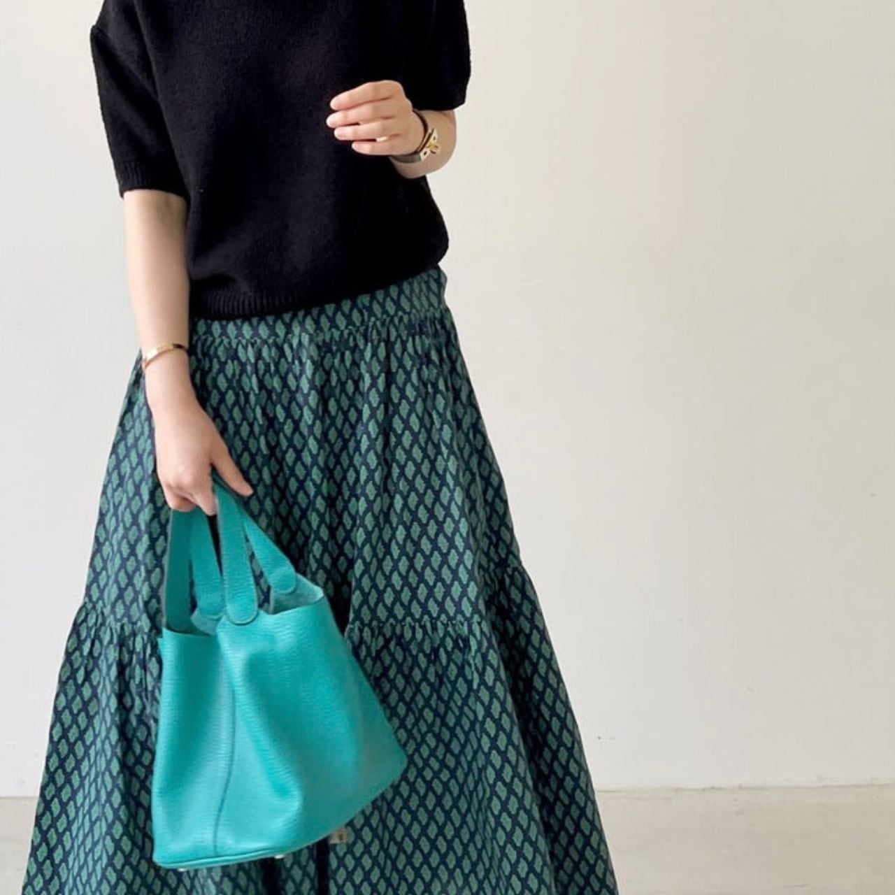 シンプルなTシャツと合わせてデイリーユースに、ブラウスと合わせて上品なスタイルにも。