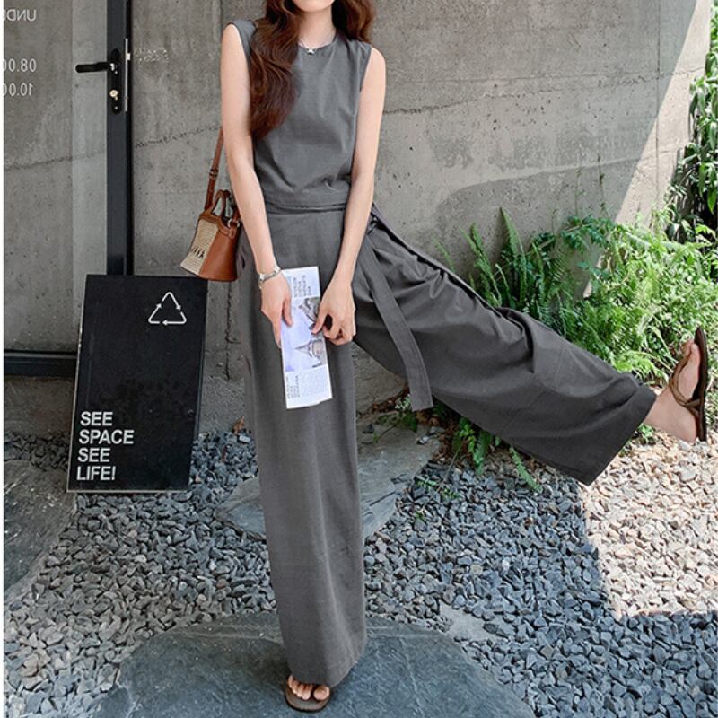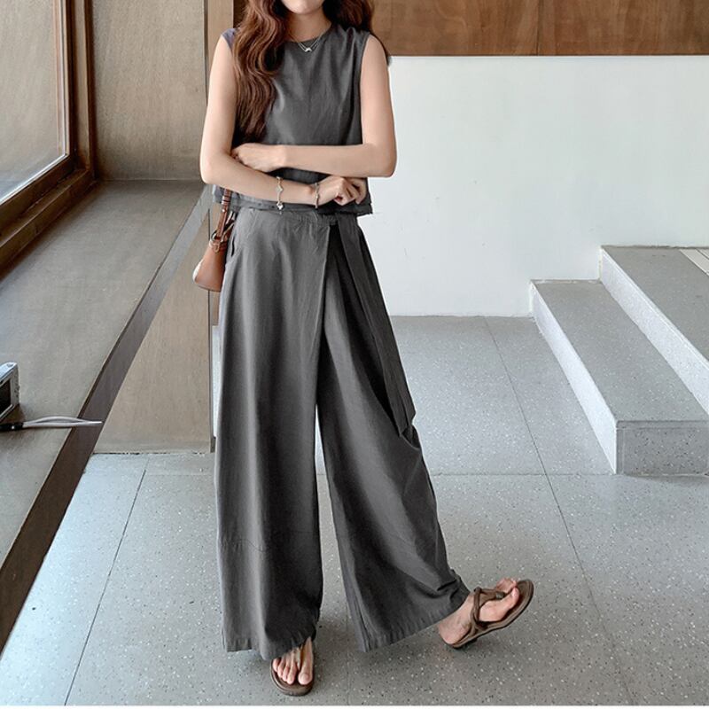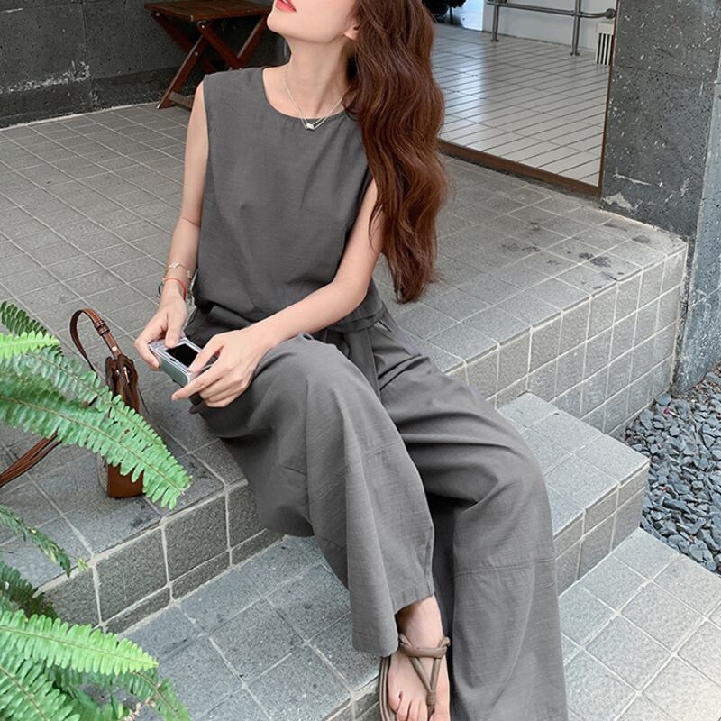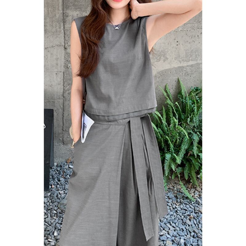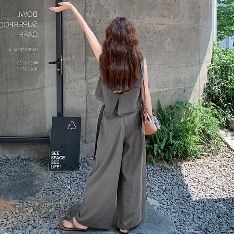 リネンライク素材のセットアップは、着心地の良さが魅力です。