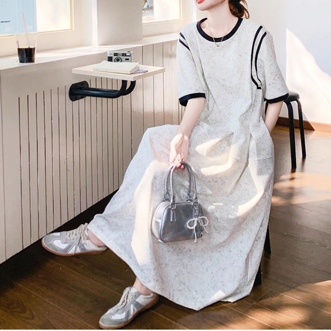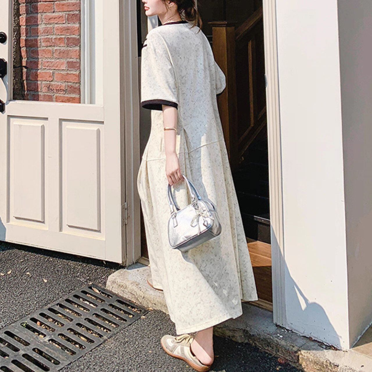 カジュアルなデザインでありながら、上品さも兼ね備えたロングワンピース。
