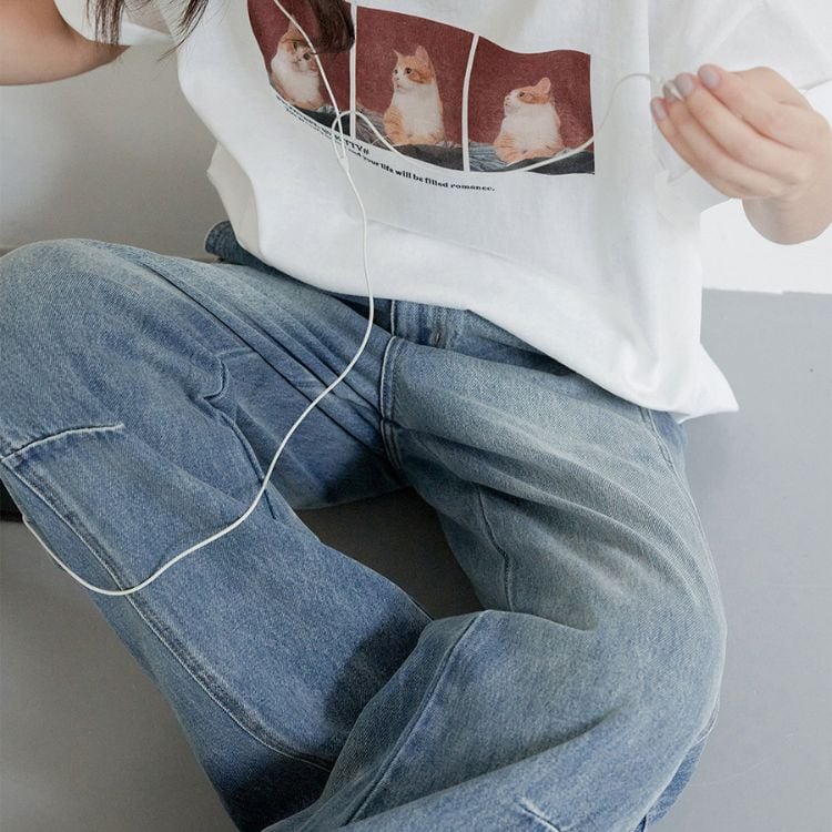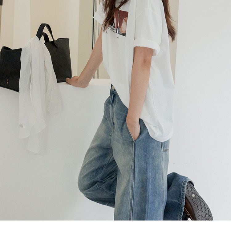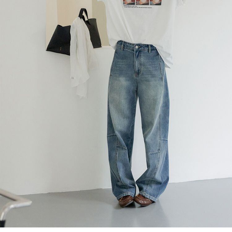 トレンド感あふれるルーズフィットワイドレッグデニムパンツ。