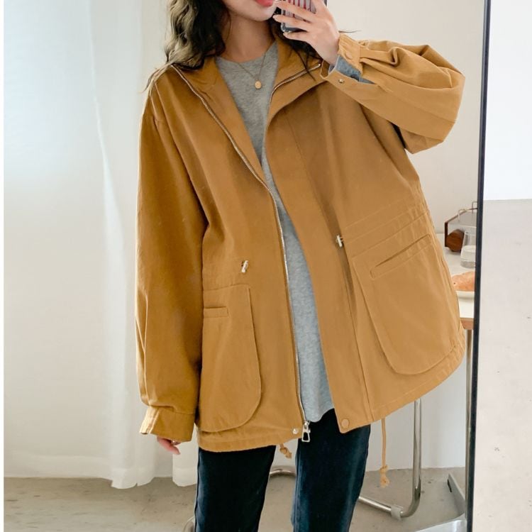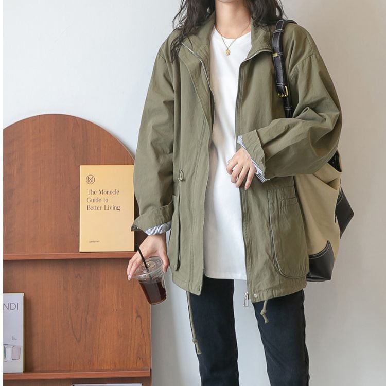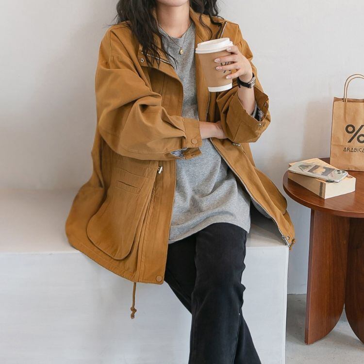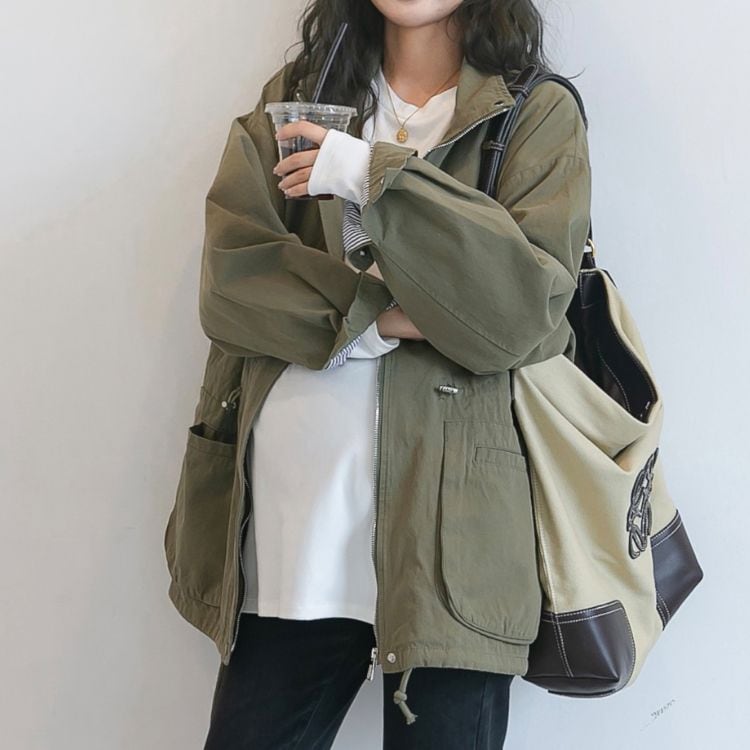 程よくオーバーサイズなシルエットが、体型をカバーしながらもスタイリッシュな印象を与えてくれるロングスリーブジャケット。