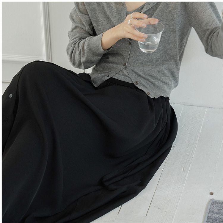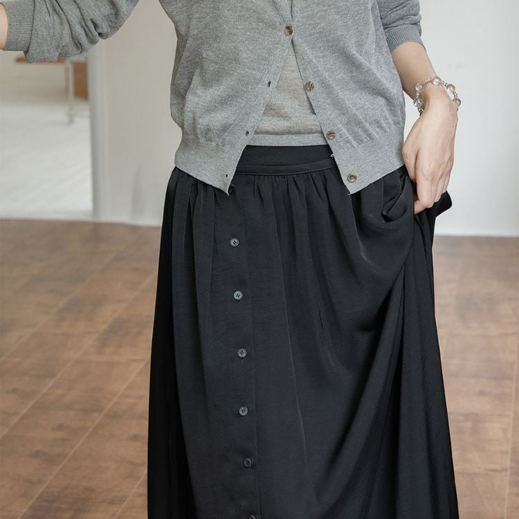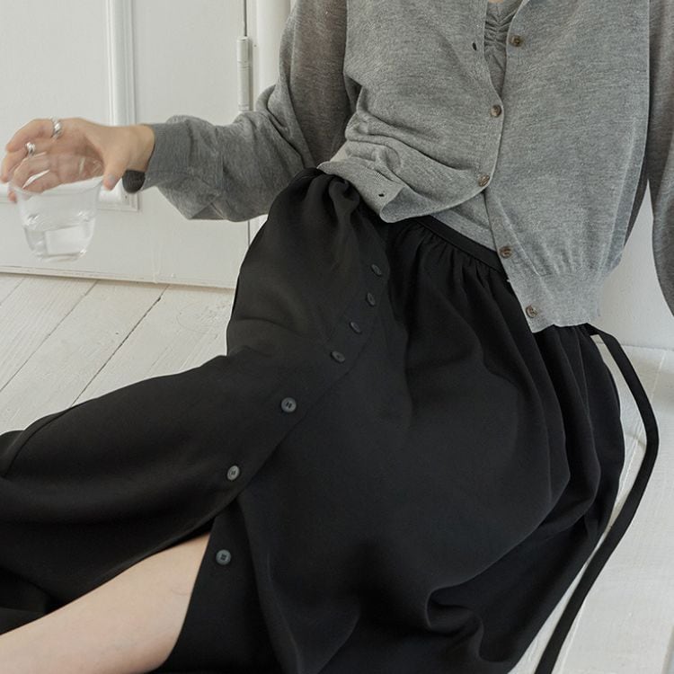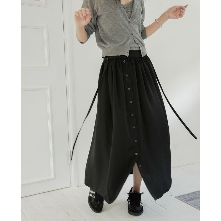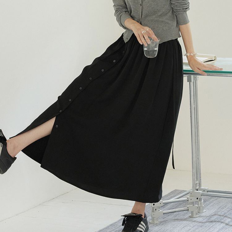 フロントのボタンとサイドのスリットが特徴的なロングスカート。