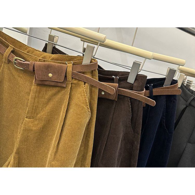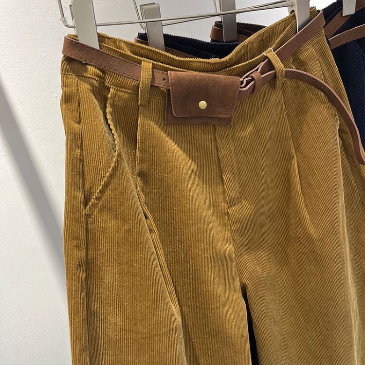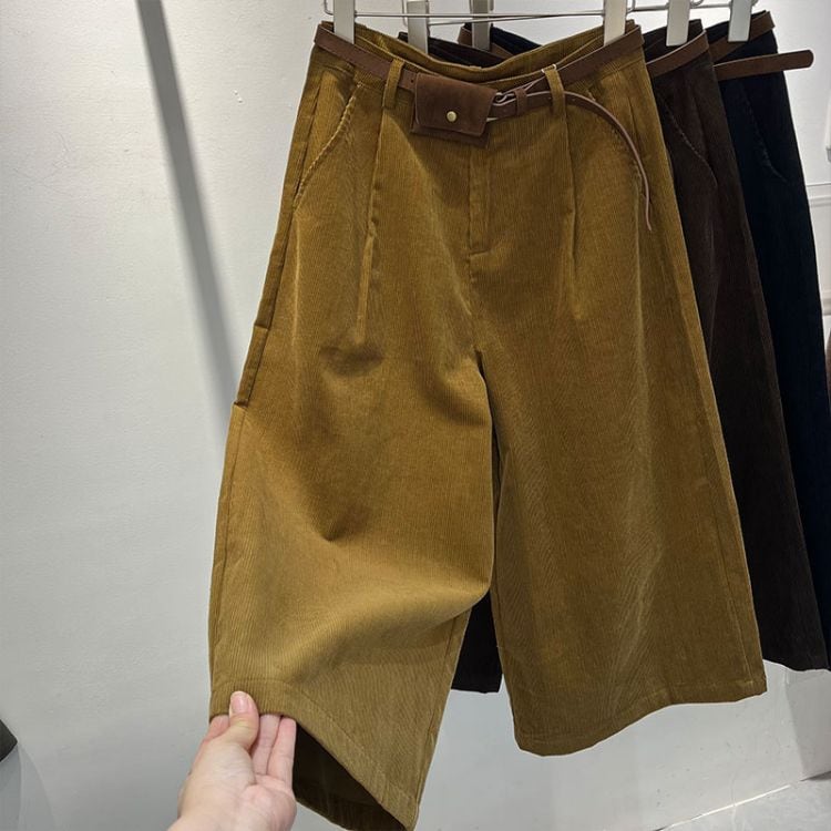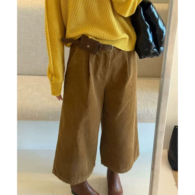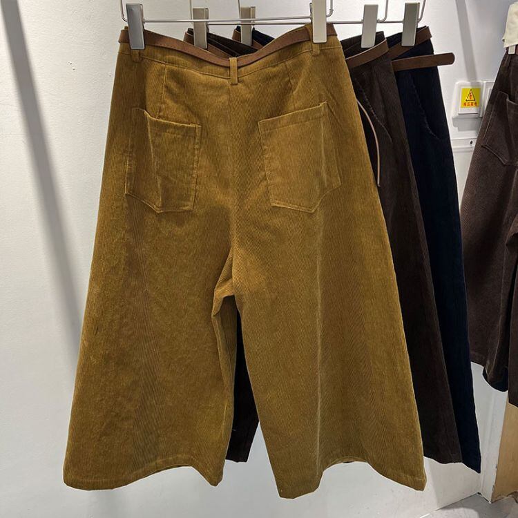 こなれ感たっぷりのコーデュロイ素材を使用した、ベルト付きワイドレッグクロップド丈パンツ。
