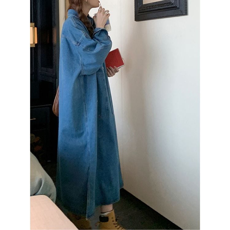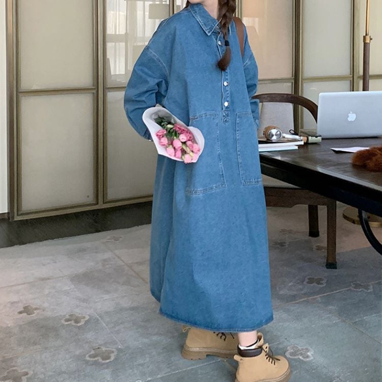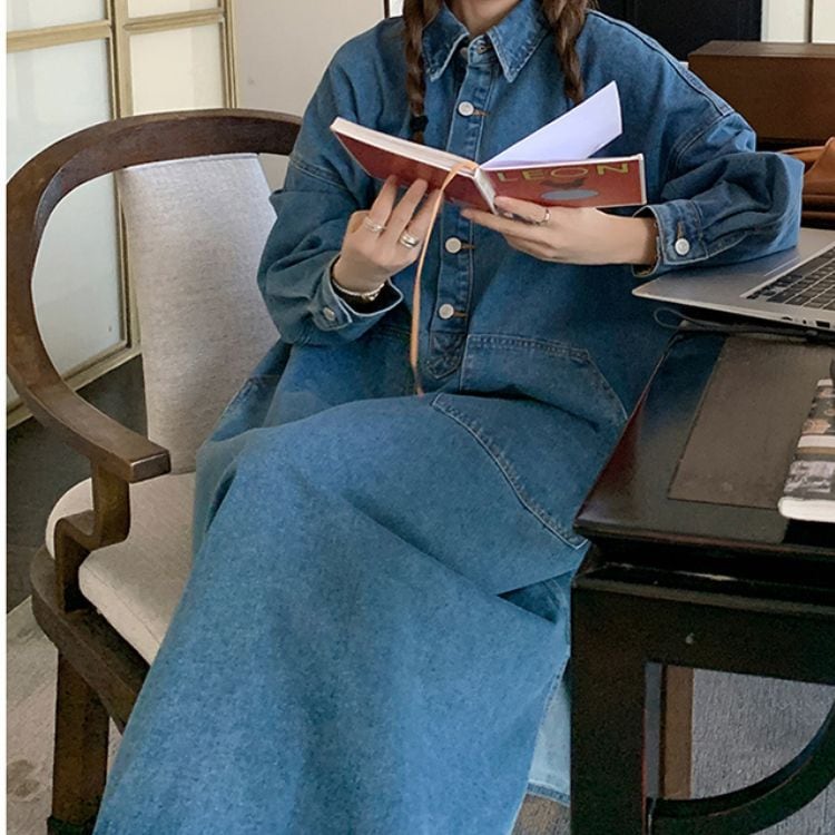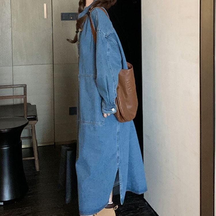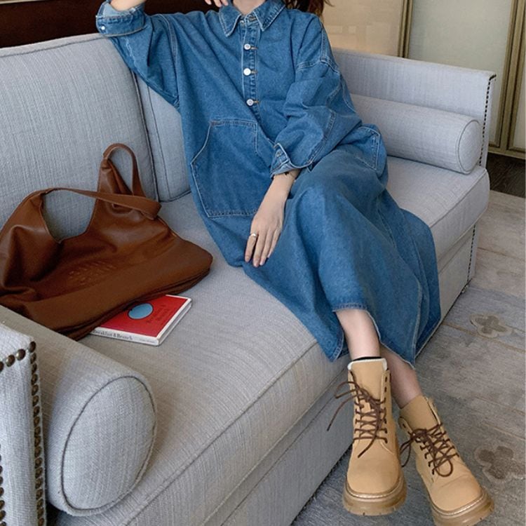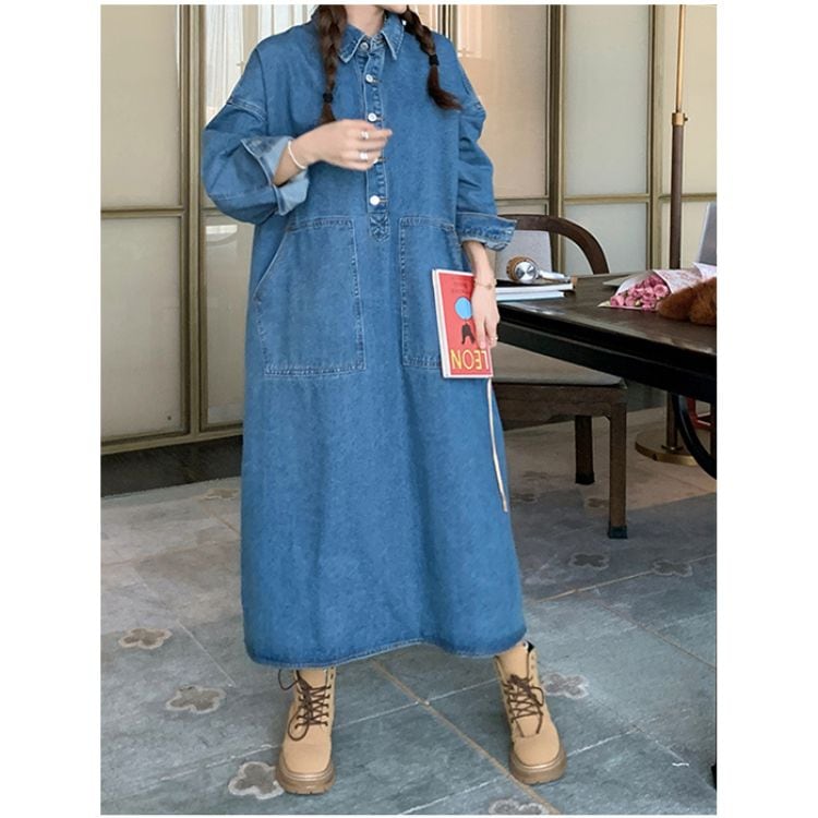 ゆったりとしたオーバーサイズシルエットが魅力のデニムワンピース。