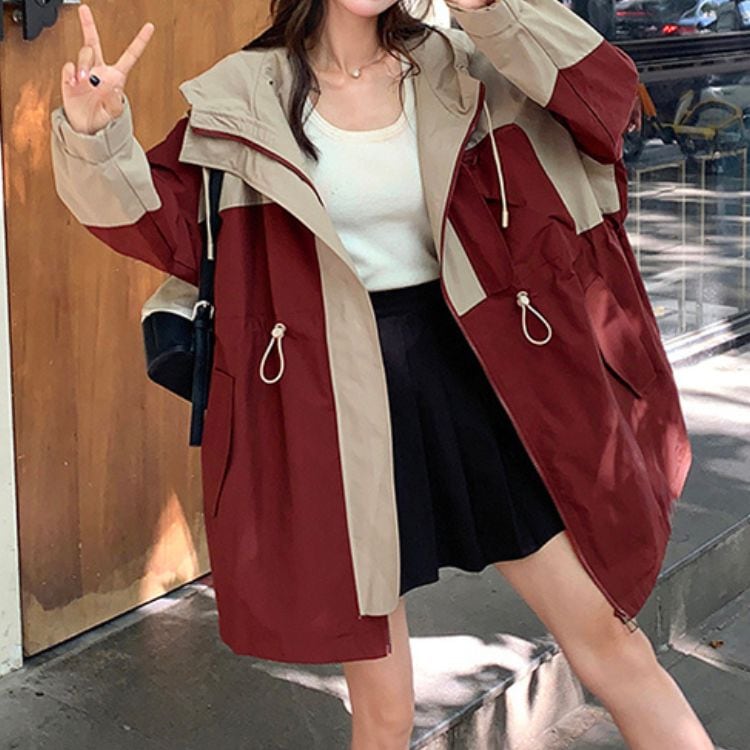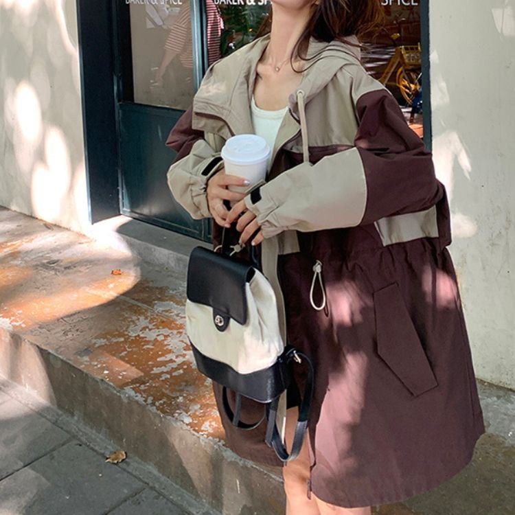 ゆったりシルエットで羽織るだけでこなれ感を演出する、バイカラーフーディジャケット。