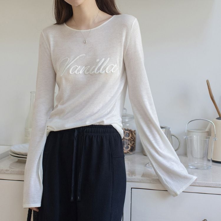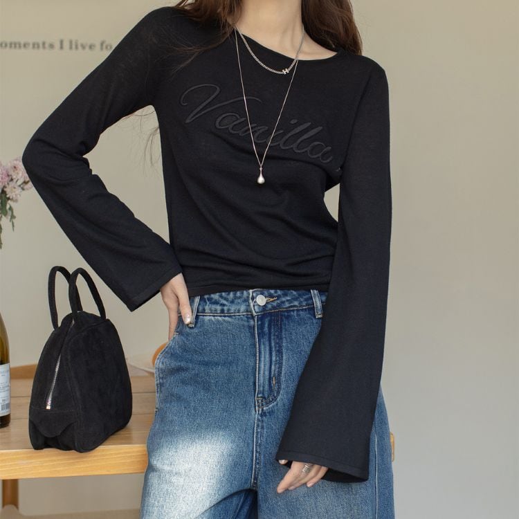 ふんわり軽やかな素材に、袖口のトランペットスリーブがやさしく揺れる大人カジュアルなロゴカットソー。