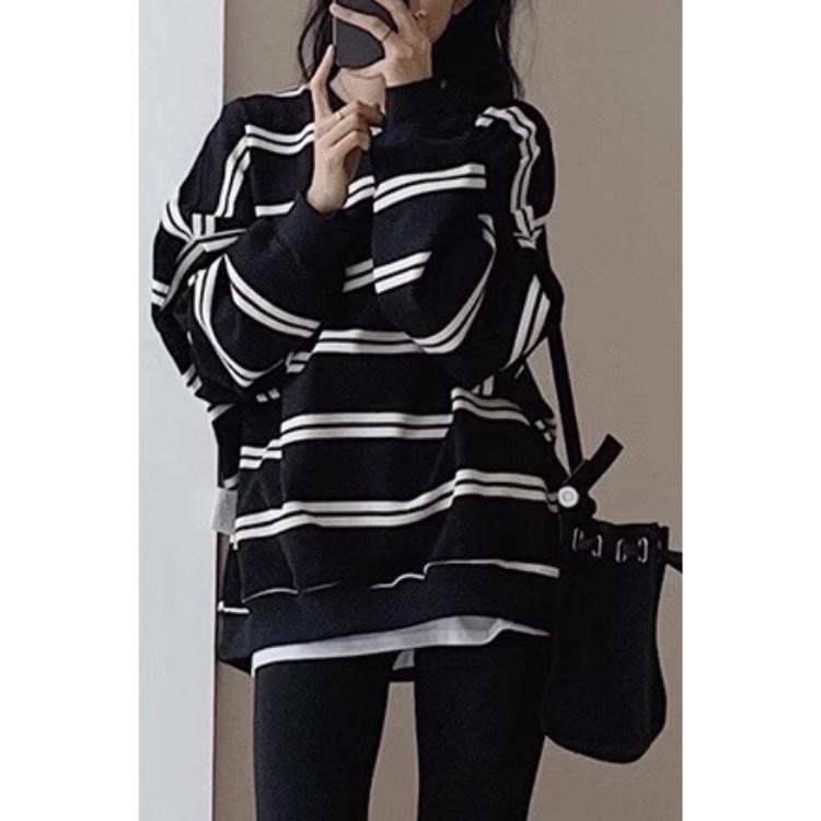 ゆったりとしたサイズ感が魅力のボーダースウェット。