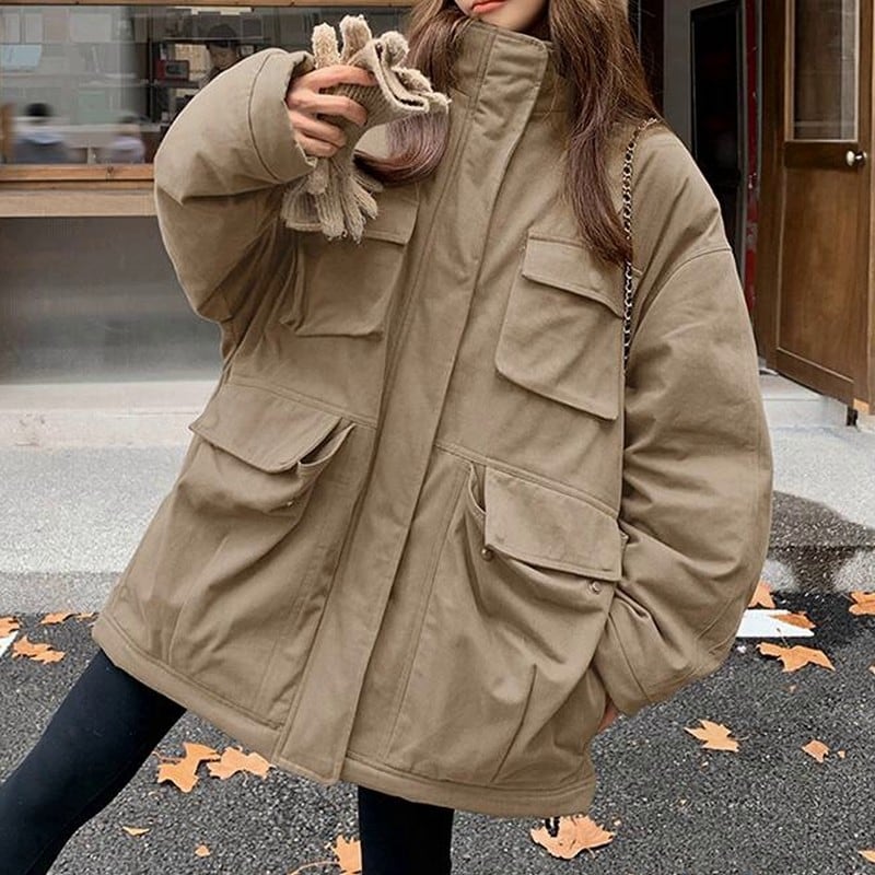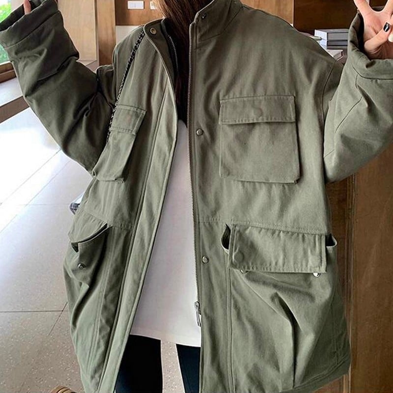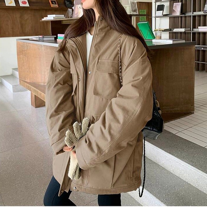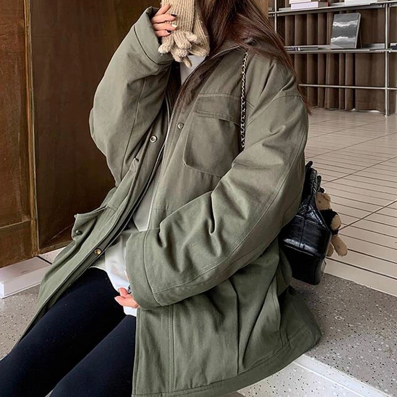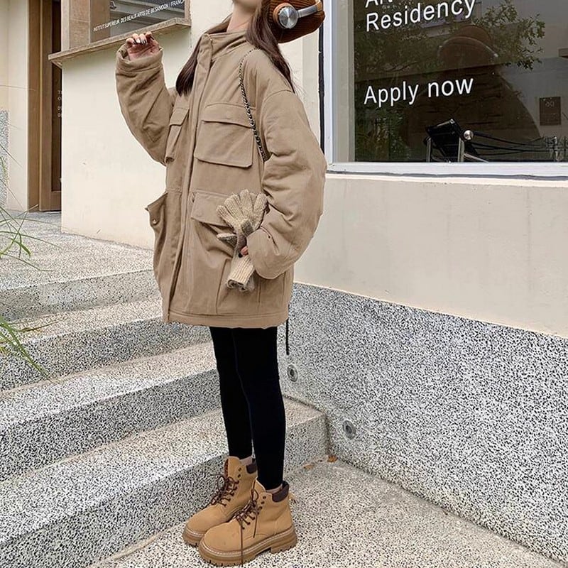 大きめポケットが印象的なワークテイストのオーバーコート。