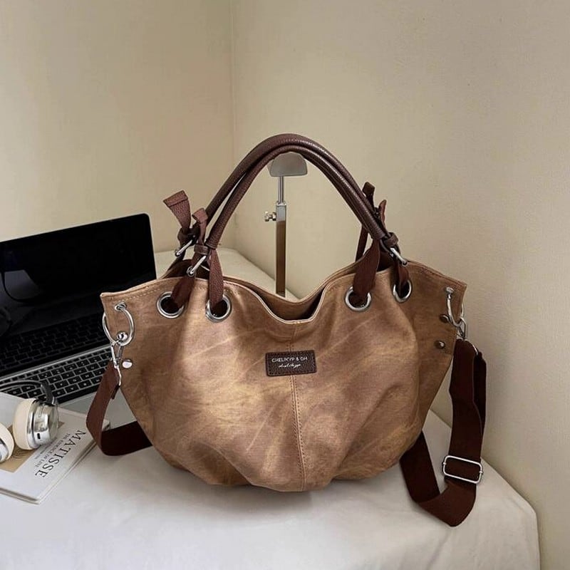 やわらかなPUレザー素材を使用した、レザーライクな2WAYトートバッグ。