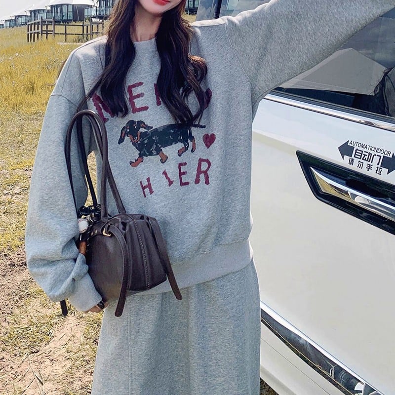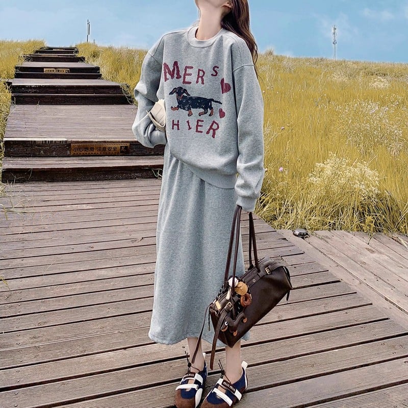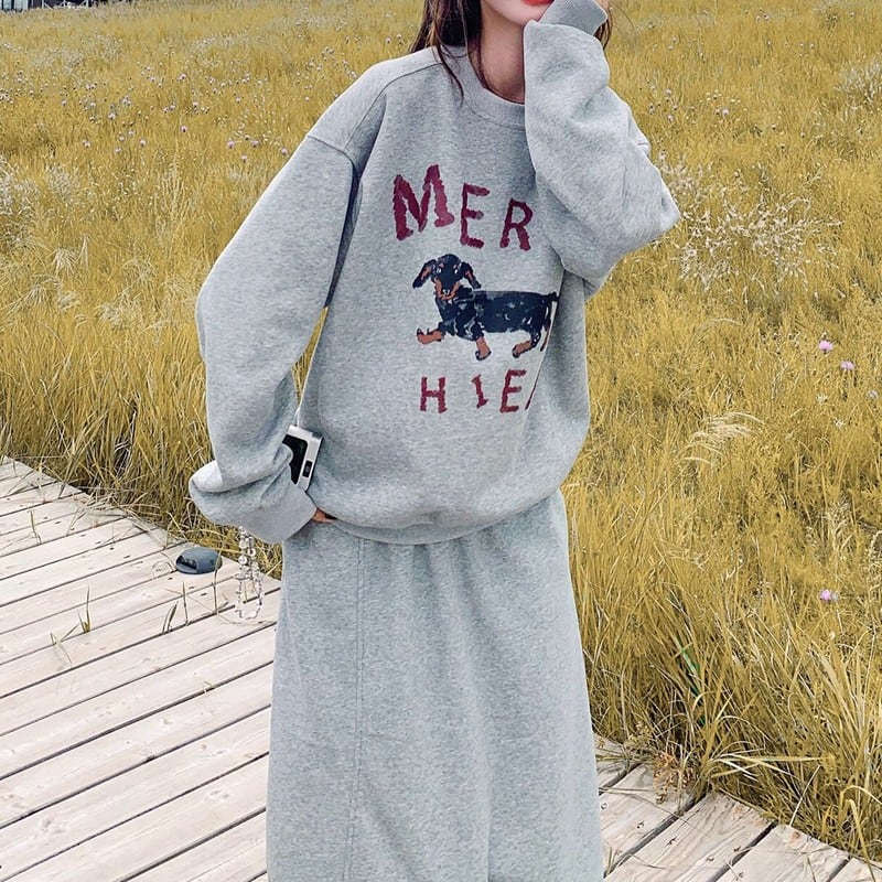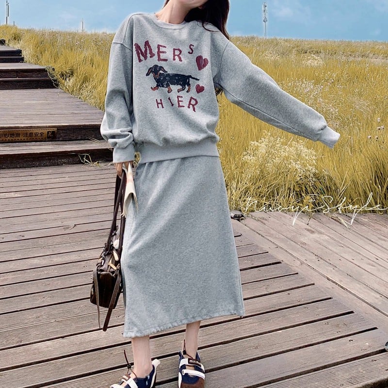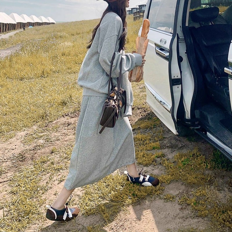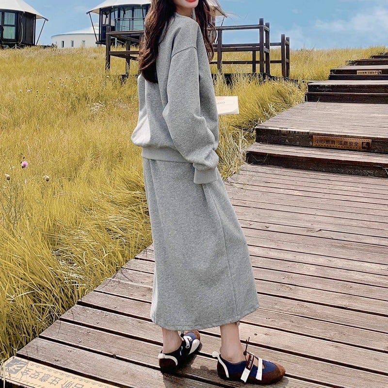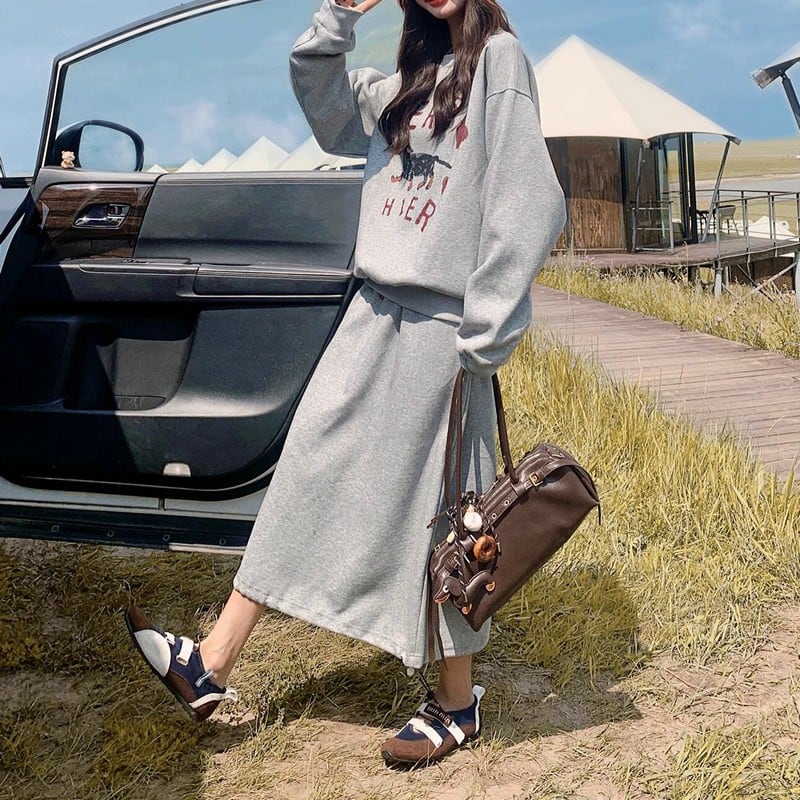 ゆるっとしたシルエットが可愛い、スウェット×スカートのカジュアルセットアップ。