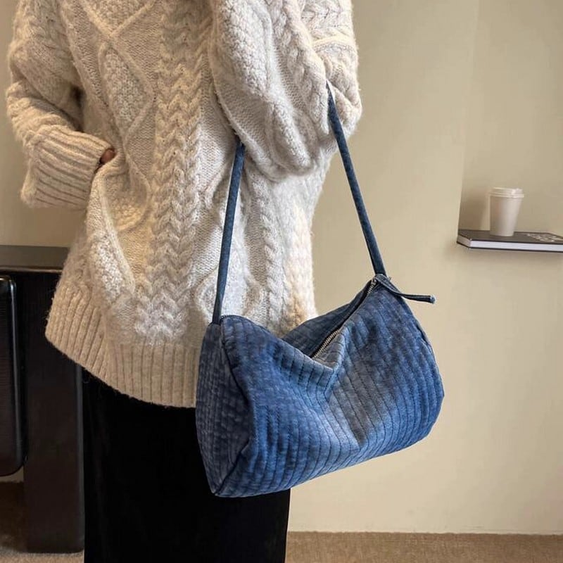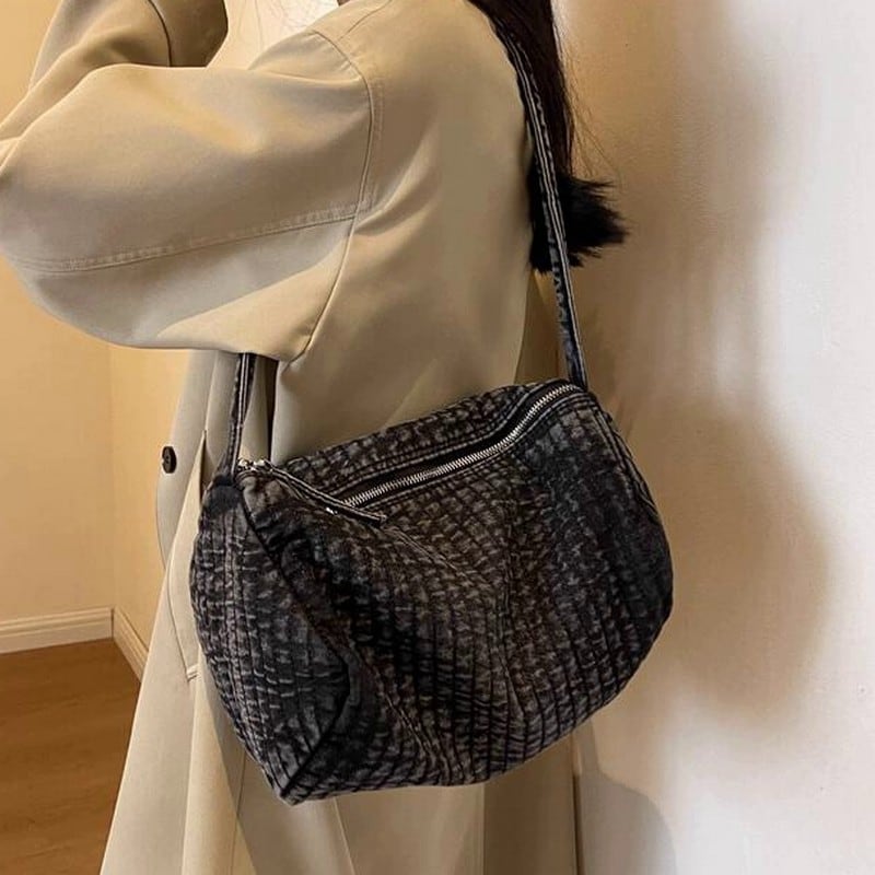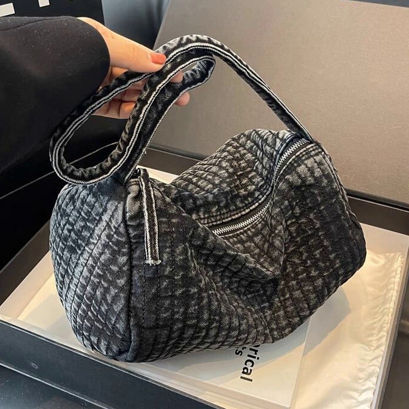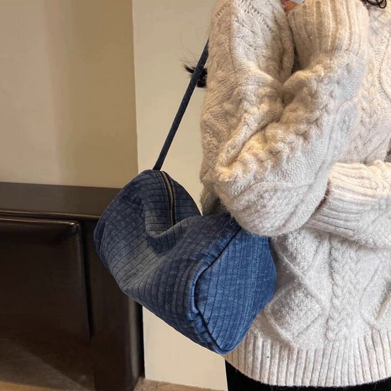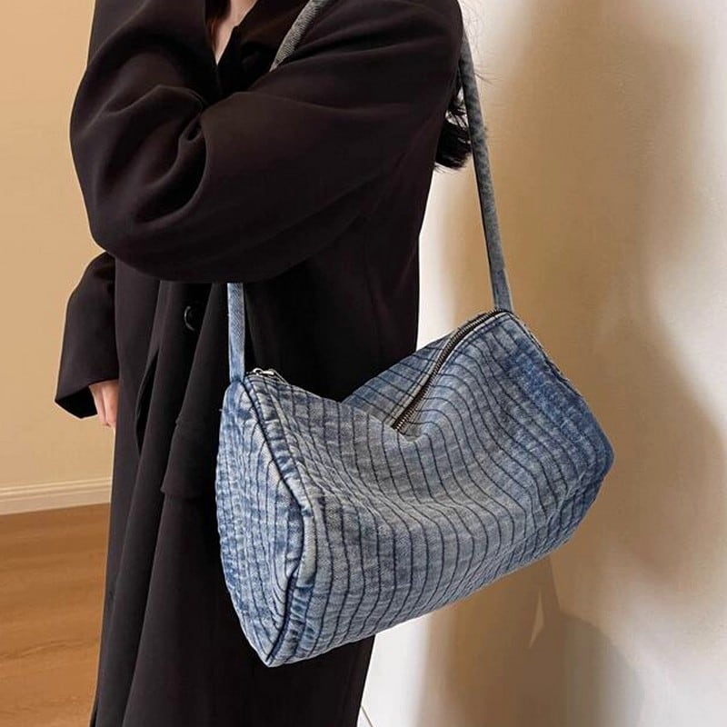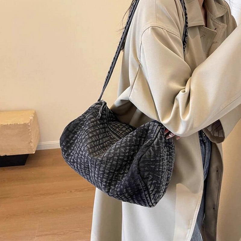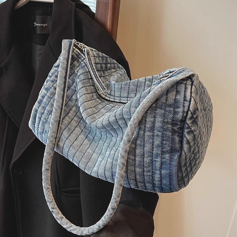 ふんわりとしたキルティング加工が魅力のデニムバッグ。