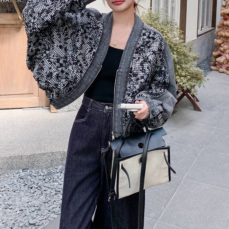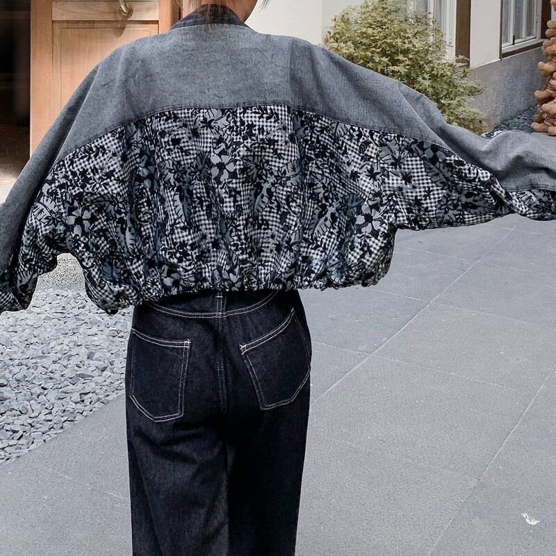 異素材を組み合わせた、個性派デザインのショートジャケット。