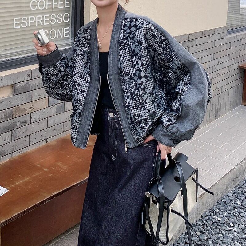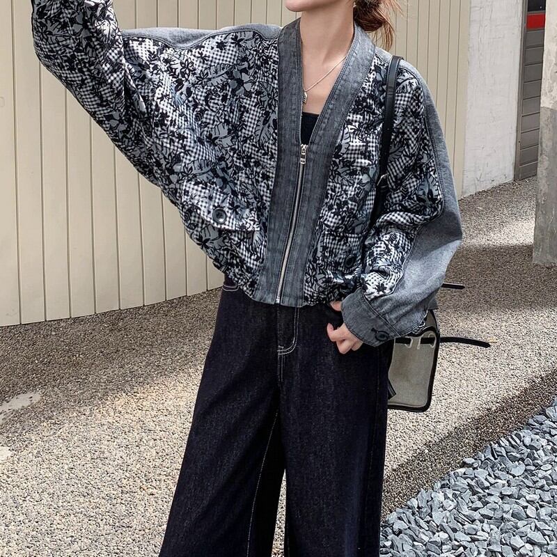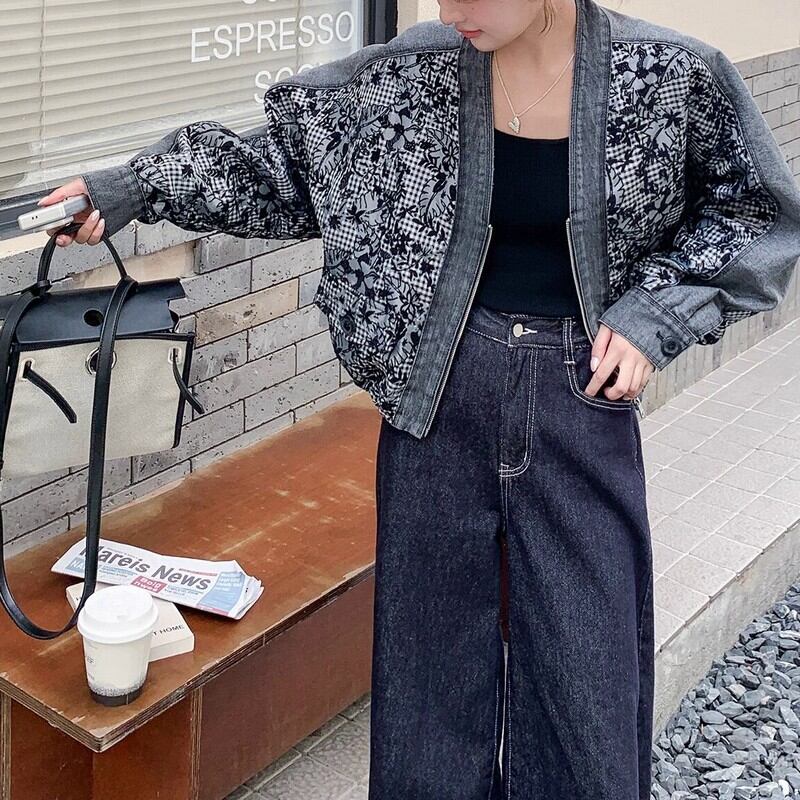 チェック×フラワー柄を切り替えた印象的な一枚です。