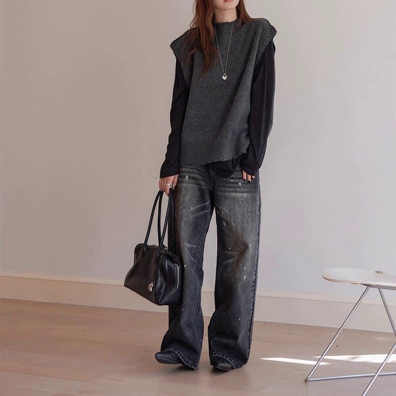 ゆるっとしたニットやショート丈アウターとの相性も抜群です。