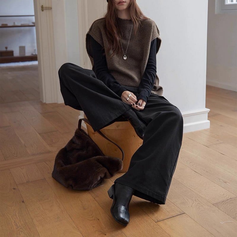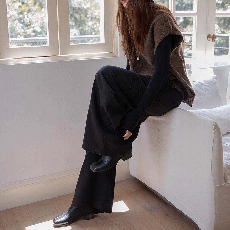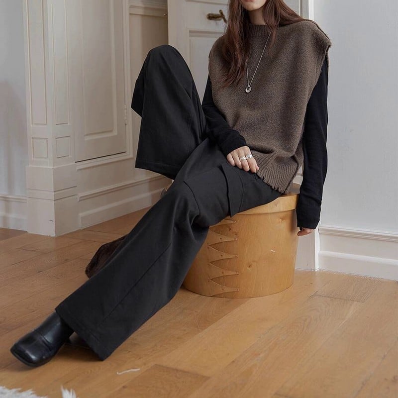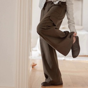 ウエスト周りはすっきりと、裾にかけてゆるやかに広がるワイドシルエット。