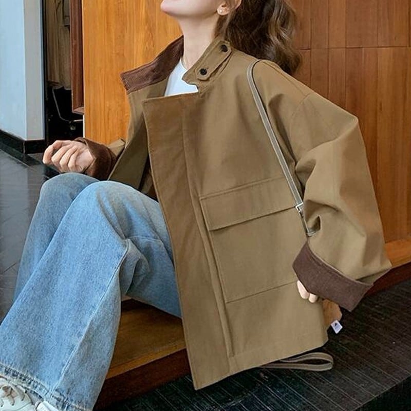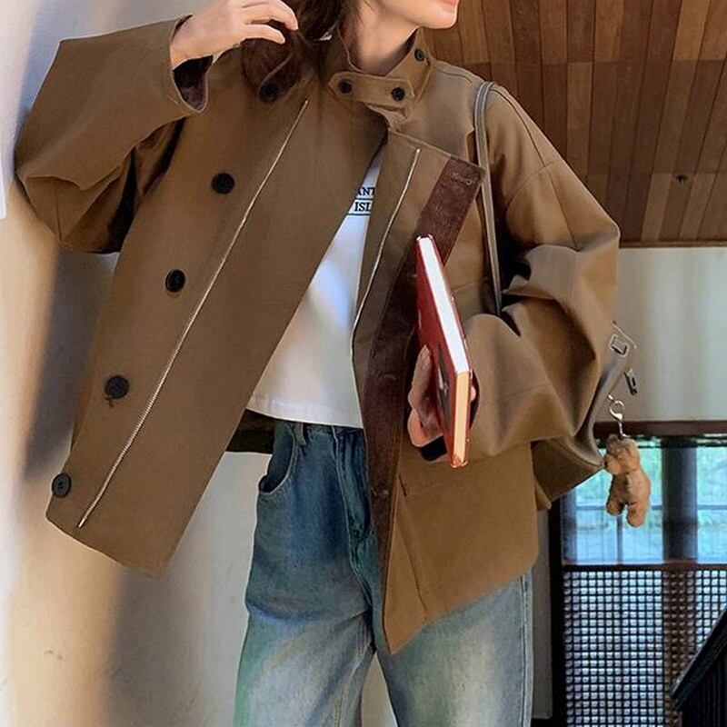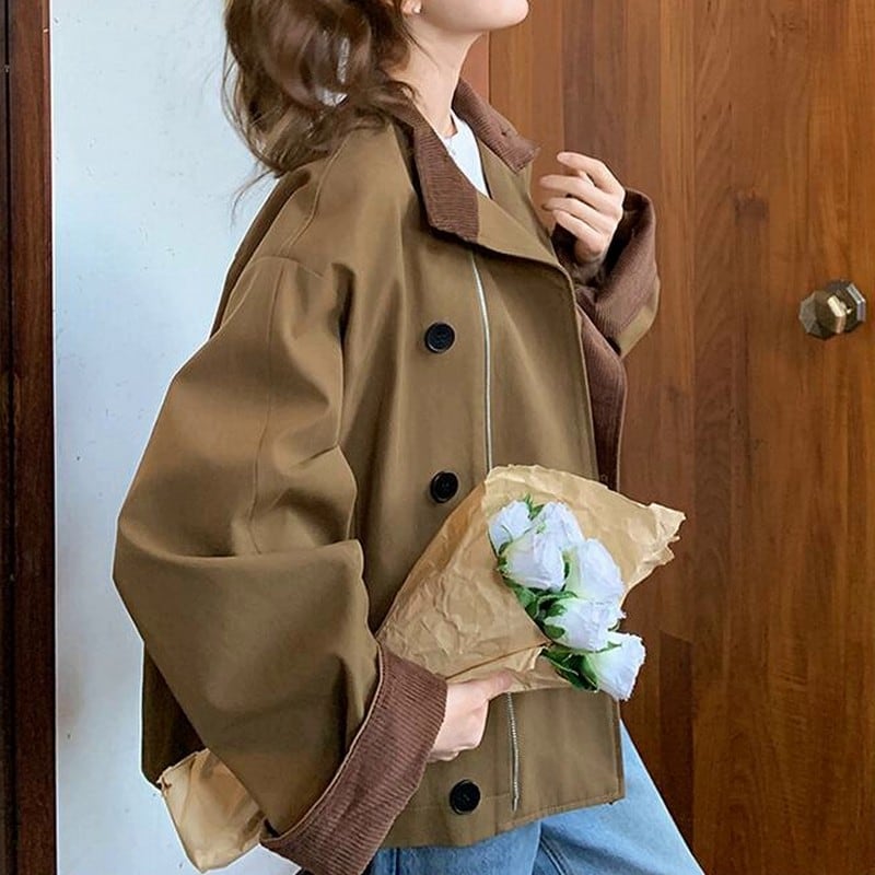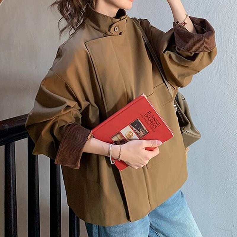 ゆったりとしたフォルムが可愛い、ハイネックショートコート。