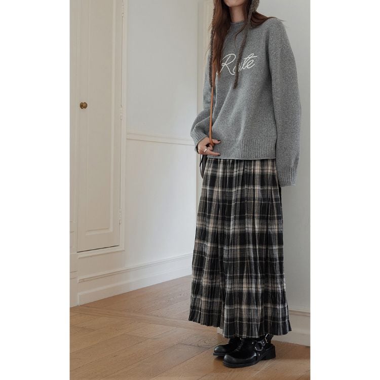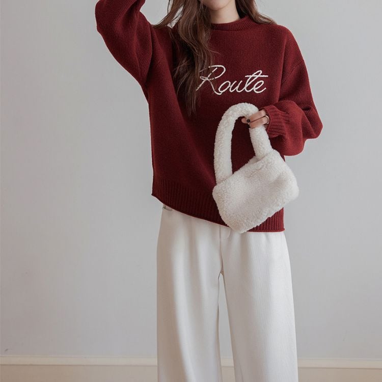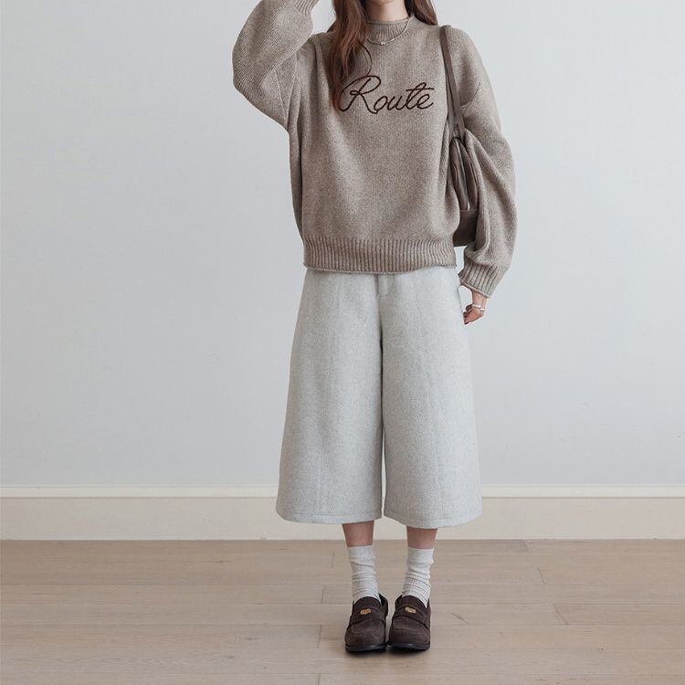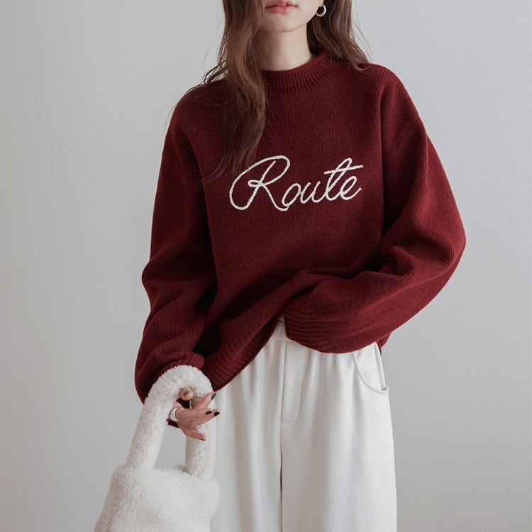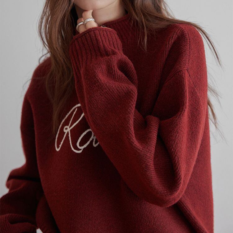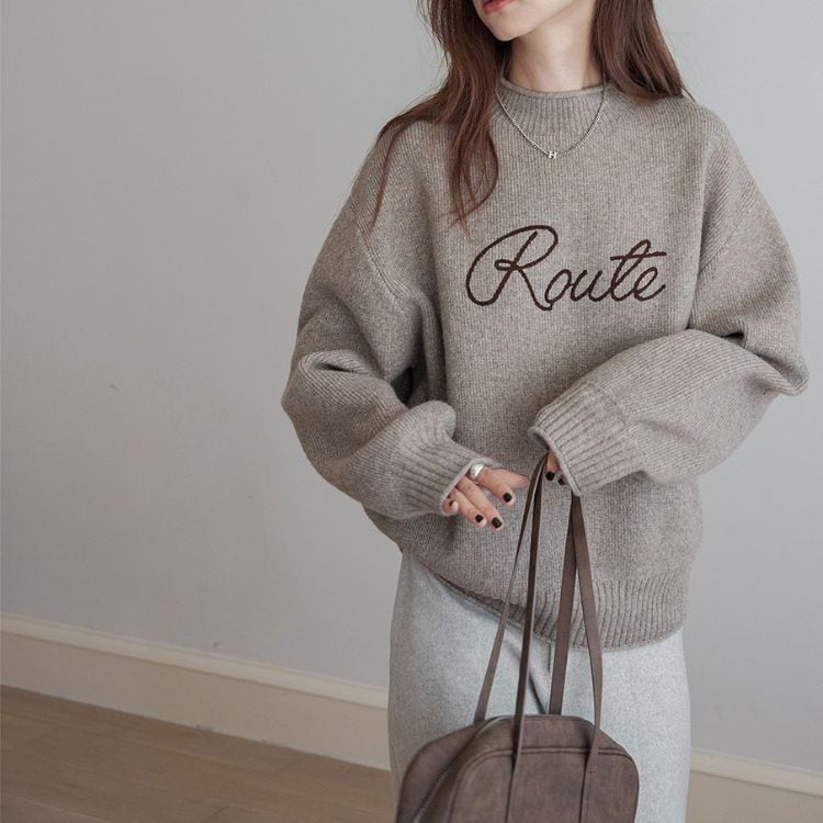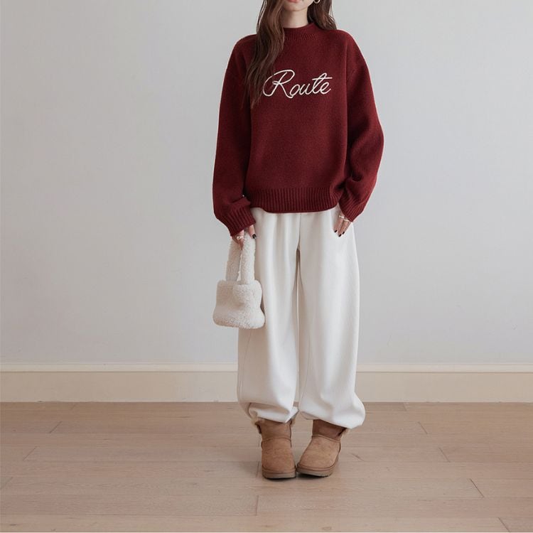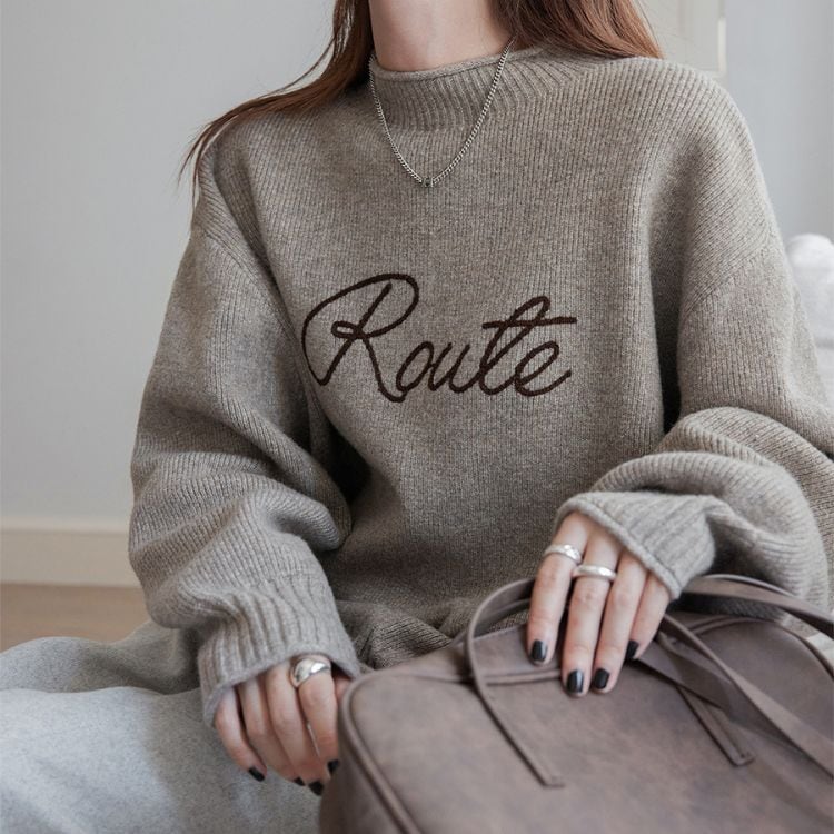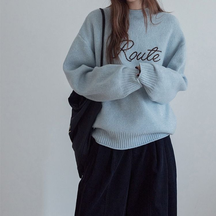 大きめの筆記体ロゴが目を引く、大人カジュアルなロゴニット。
