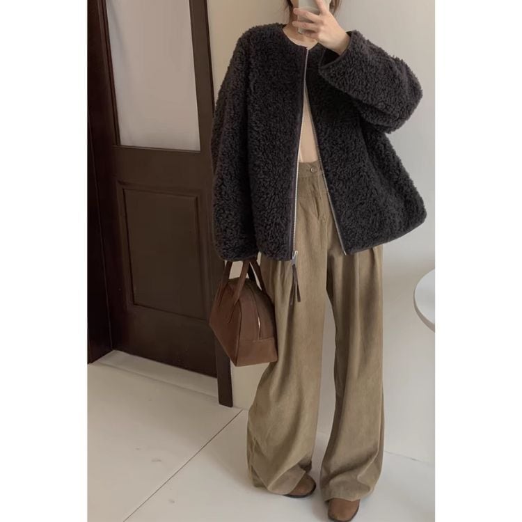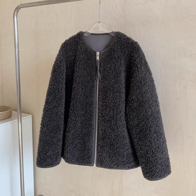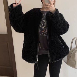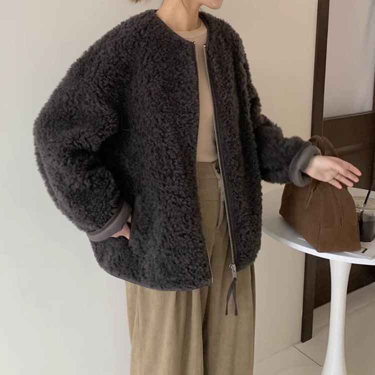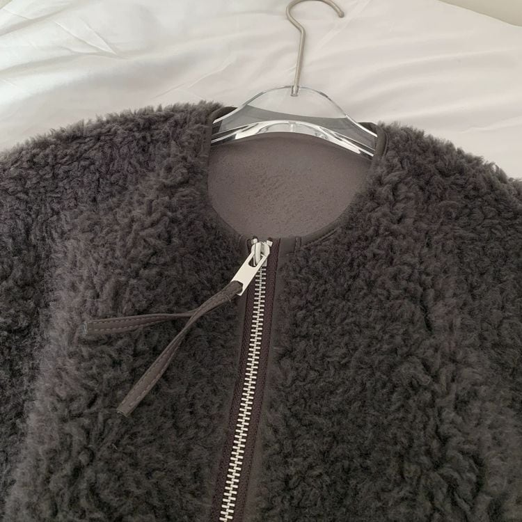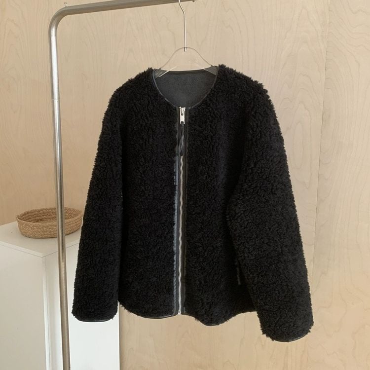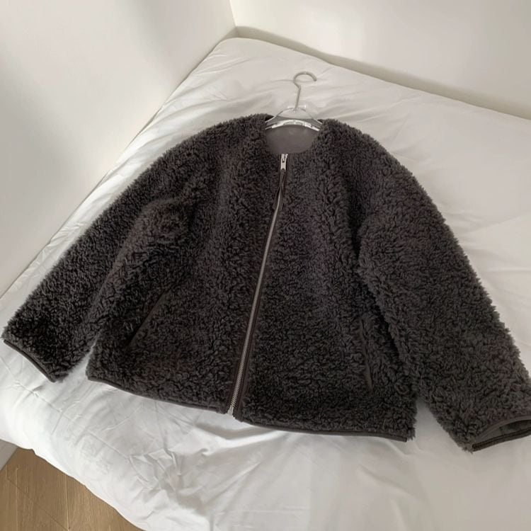 ボリュームのあるボア素材でも大人っぽく着こなせる一枚です。