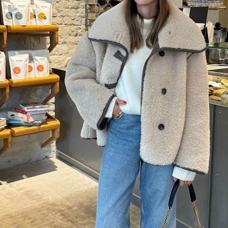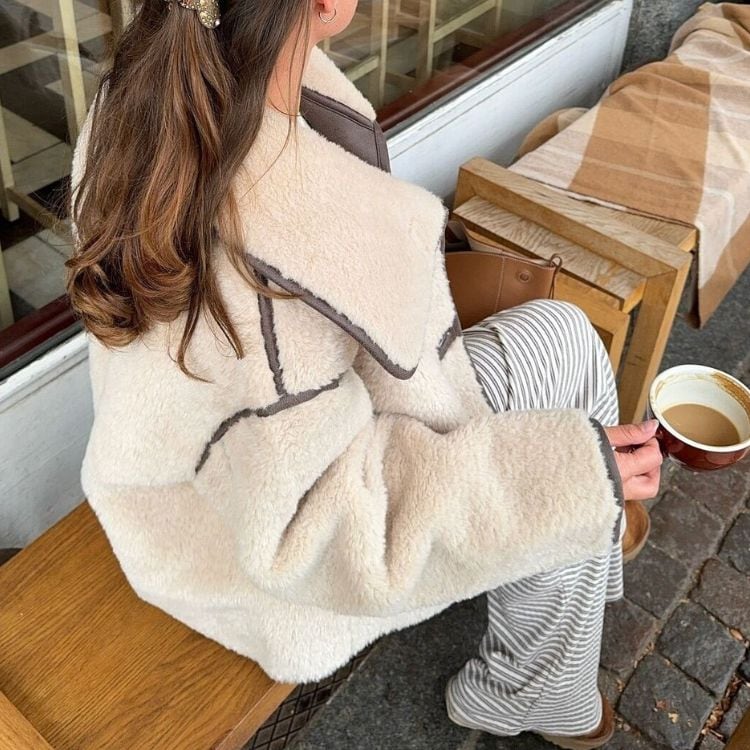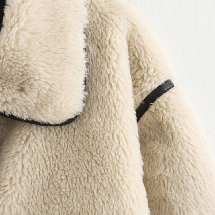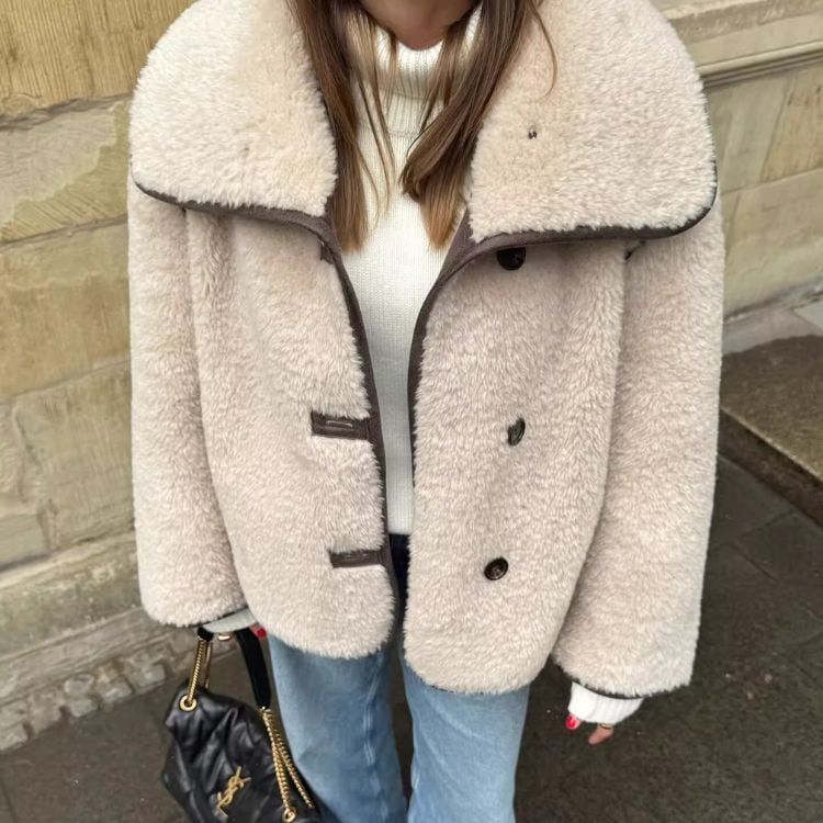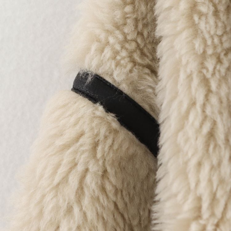 ふわふわのボアとスエード調の裏面を一体に仕上げた、あたたかみのあるフェイクムートンジャケット。