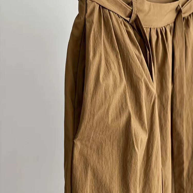 シンプルに見えて表面にナチュラルなシワ感があり、甘くなりすぎず大人のリラックススタイルにしっくり馴染むデザイン。