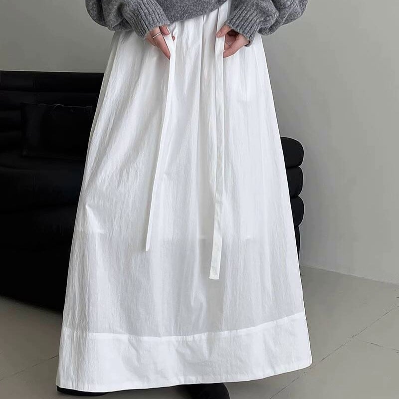 ふわりと広がるAラインシルエットが魅力のロングスカート。