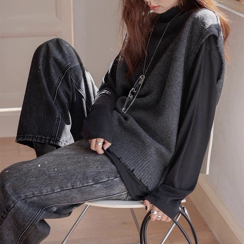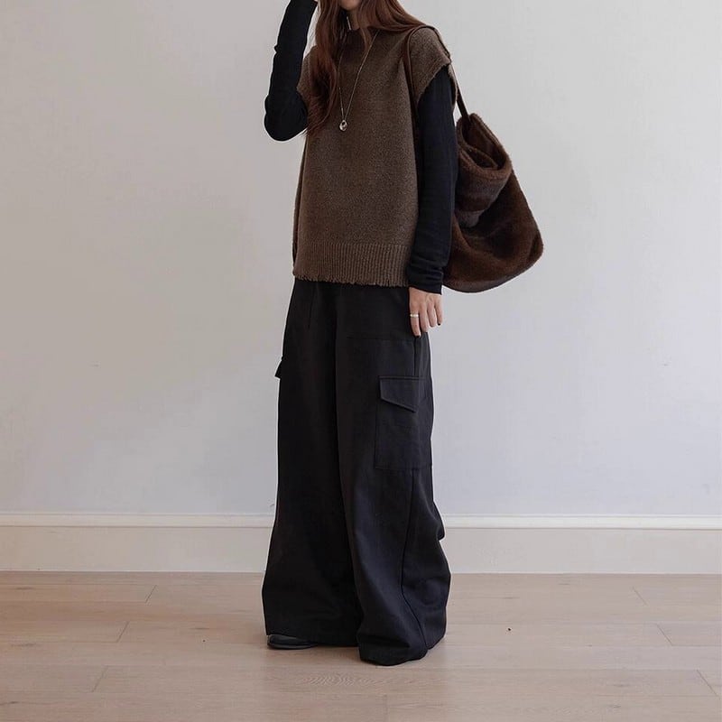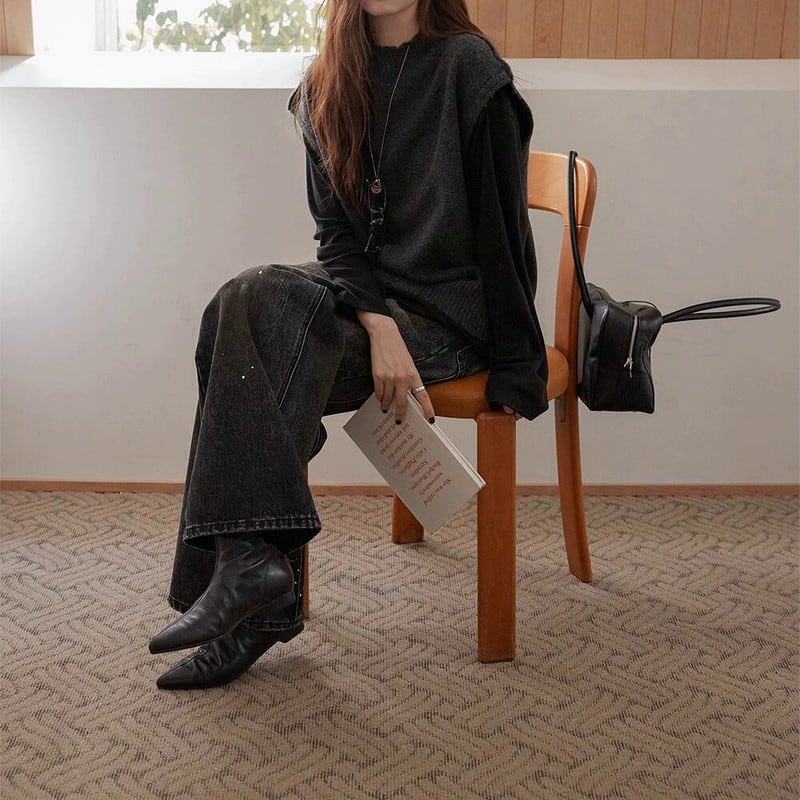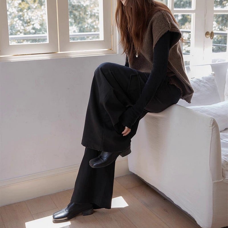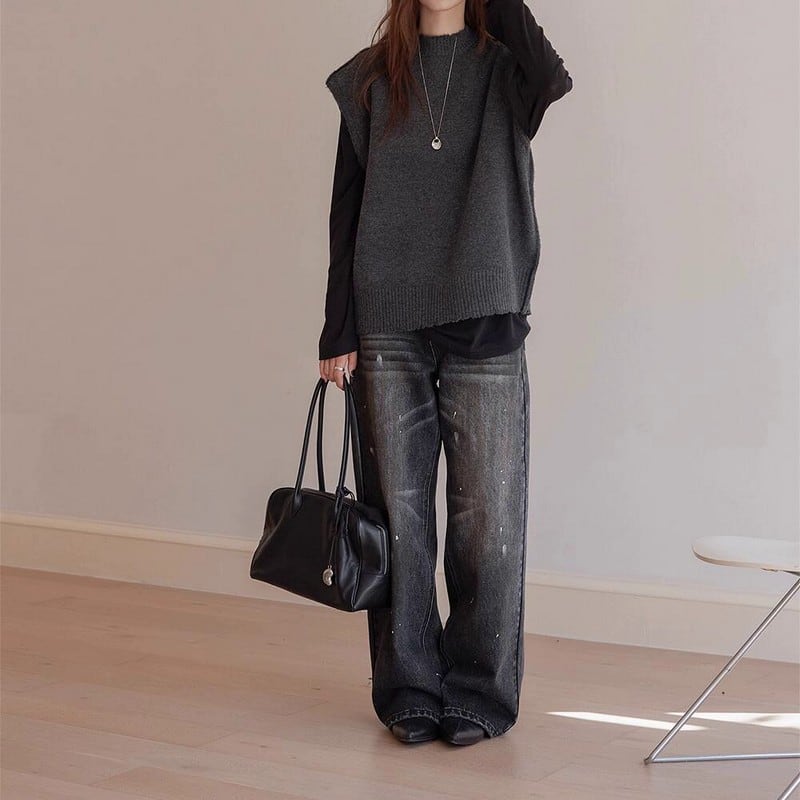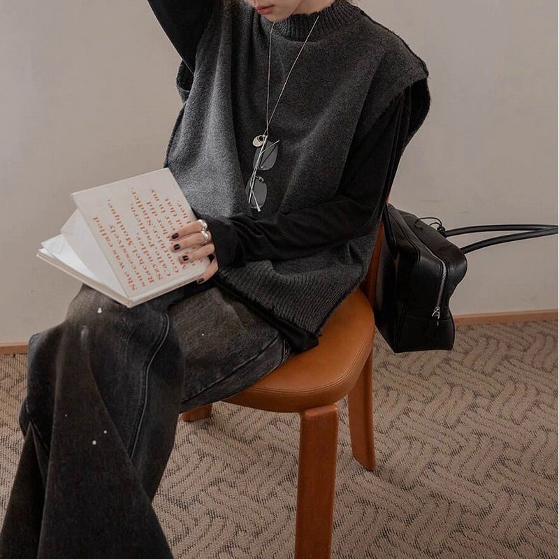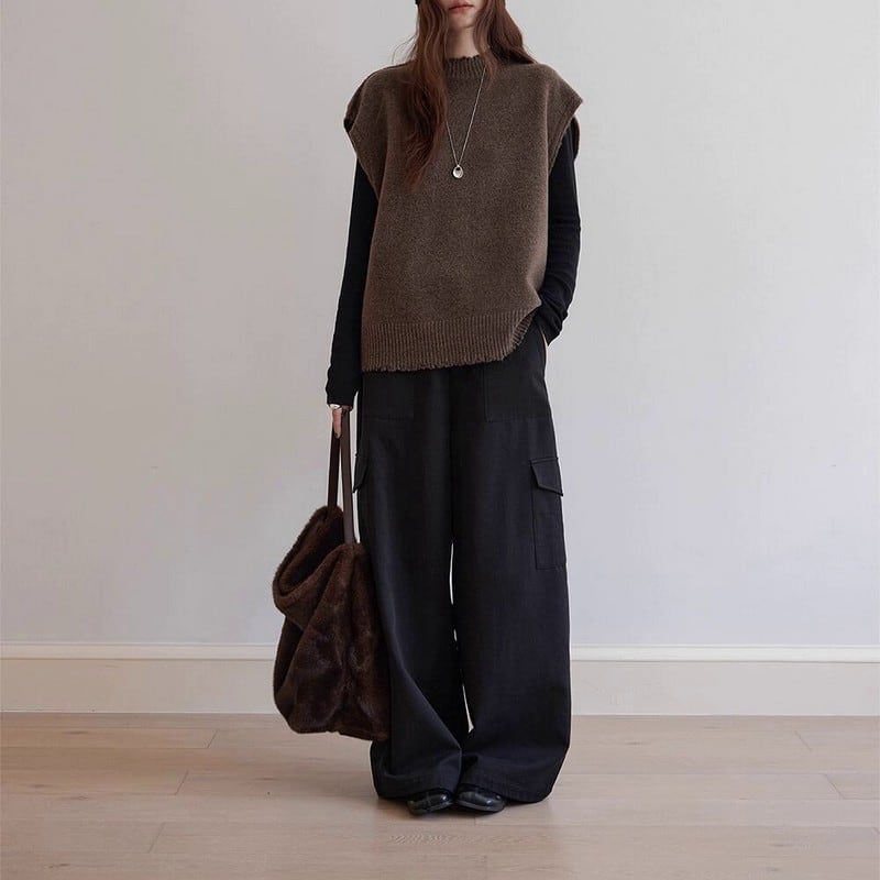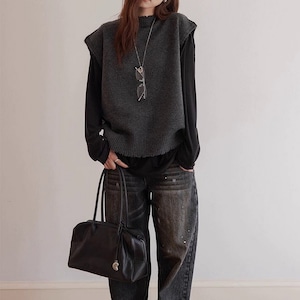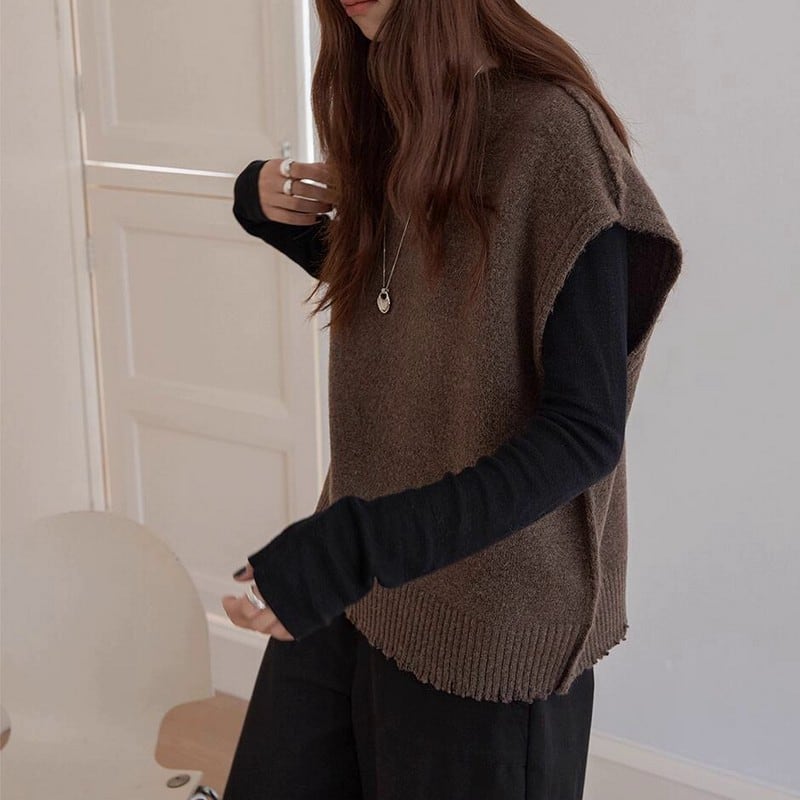 裾にさりげなく施されたニュアンスエッジが、コーデに表情を添える大人のニットベスト。