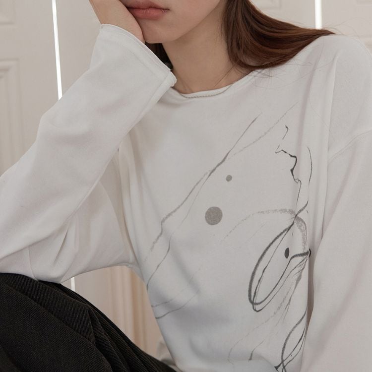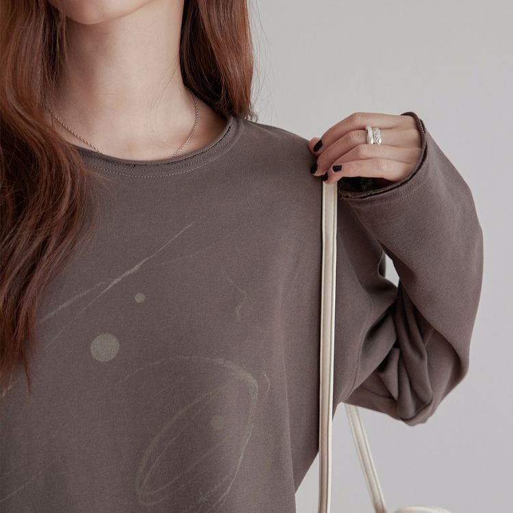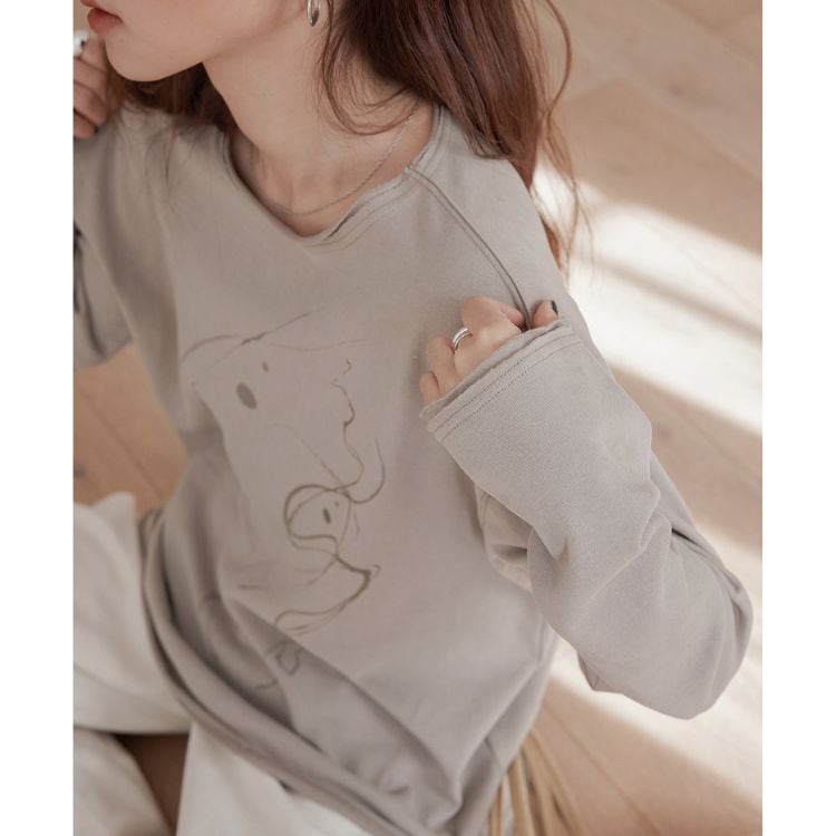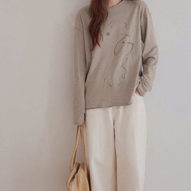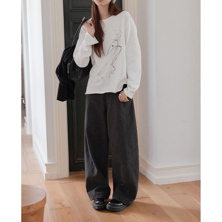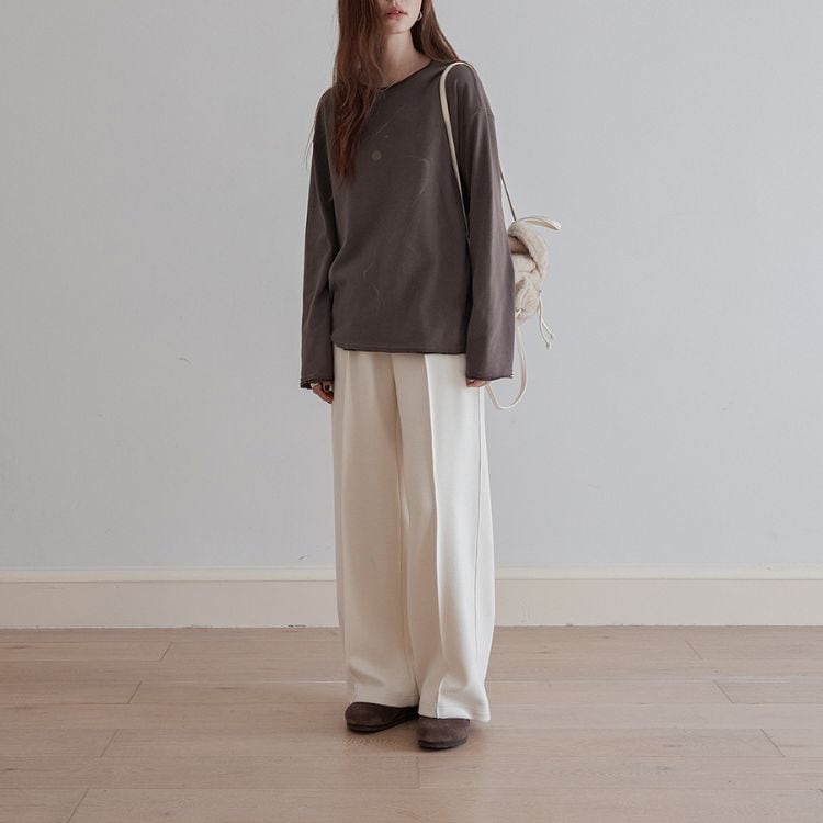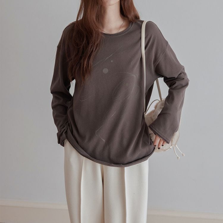 起毛感のあるシンプルなラウンドネックの長袖Tシャツは、どんなコーディネートにも合わせやすい万能アイテム。