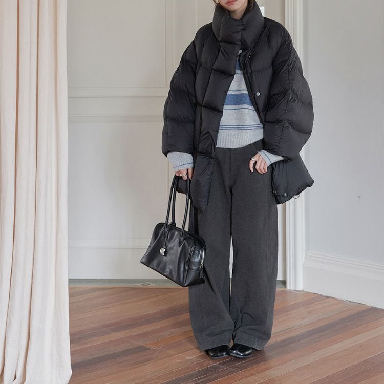 ゆとりのあるデザインながらも、ウエスト位置を選ばずバランスが取りやすく、秋冬のニットやスウェットとも好相性です。