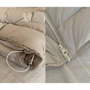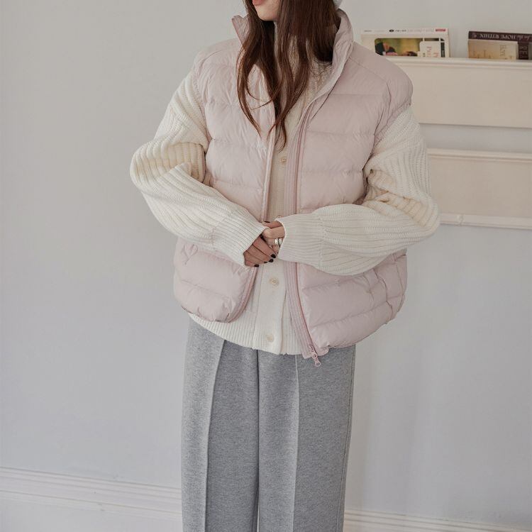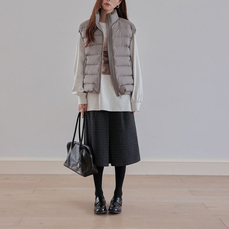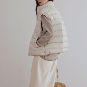 ほどよい厚みのキルティングとダウン混のあたたかさが魅力で、ニットやスウェットの上にも重ねやすいバランスに仕上げています。