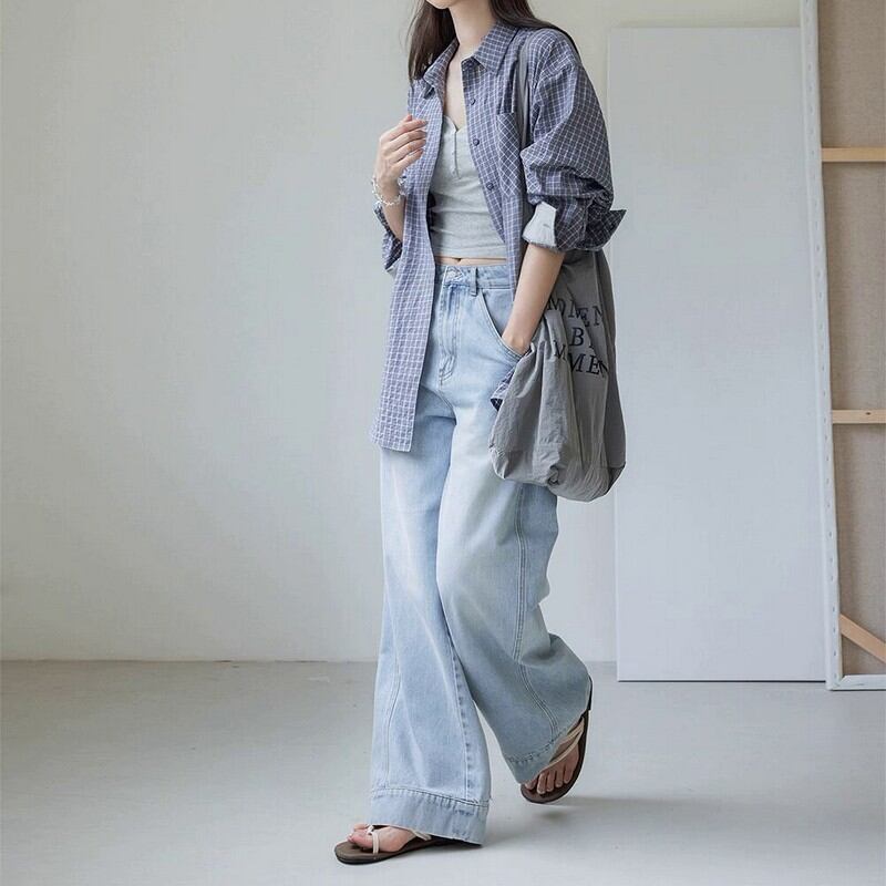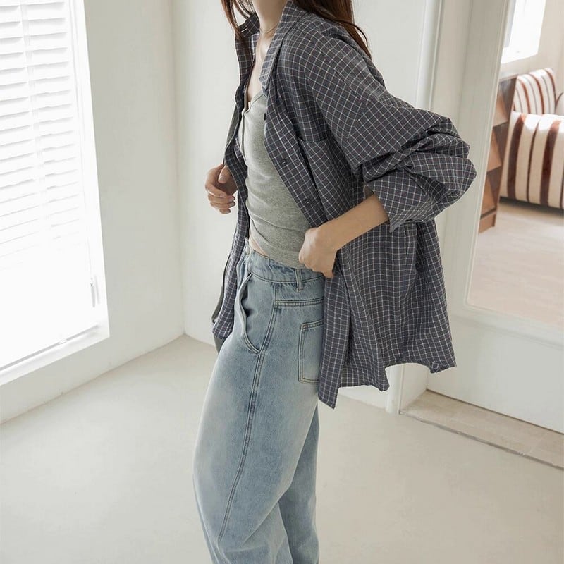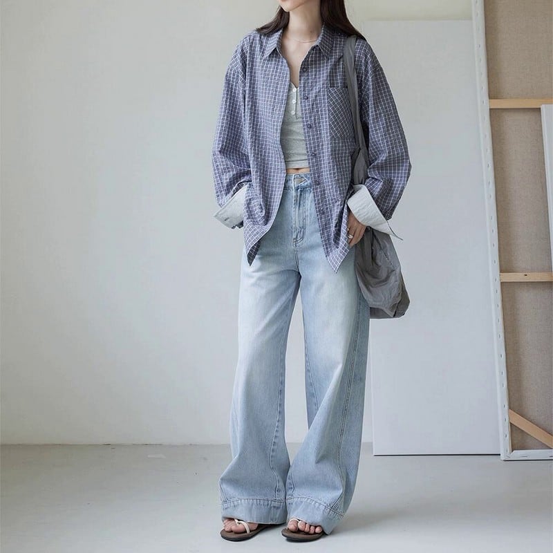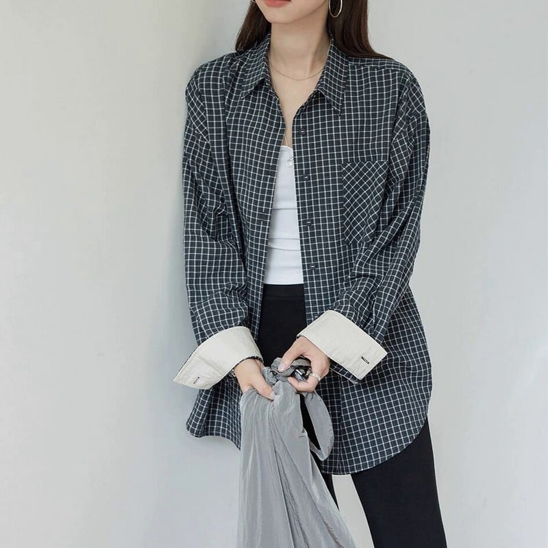 ほどよくルーズなシルエットがこなれ感を演出してくれるチェックシャツ。