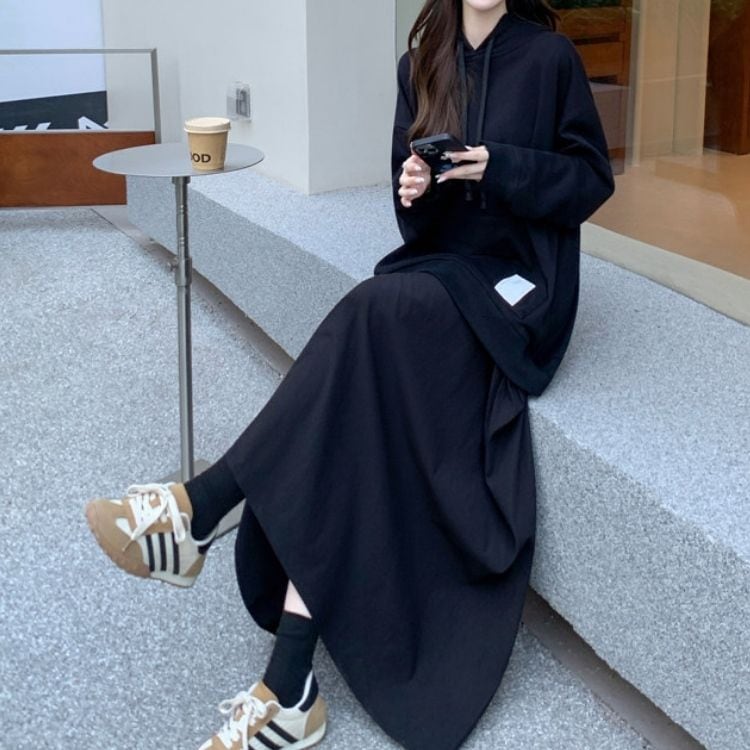 ゆったりとしたシルエットでリラックス感漂う、プルオーバーのスウェットワンピース。