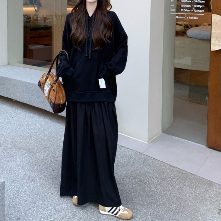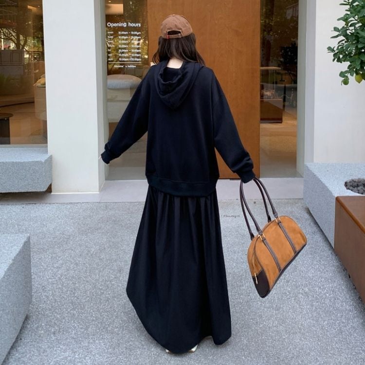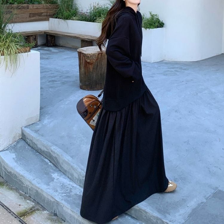 マキシ丈が気になる体型をカバーしつつ、縦長ラインを強調してスタイルアップも叶えます。