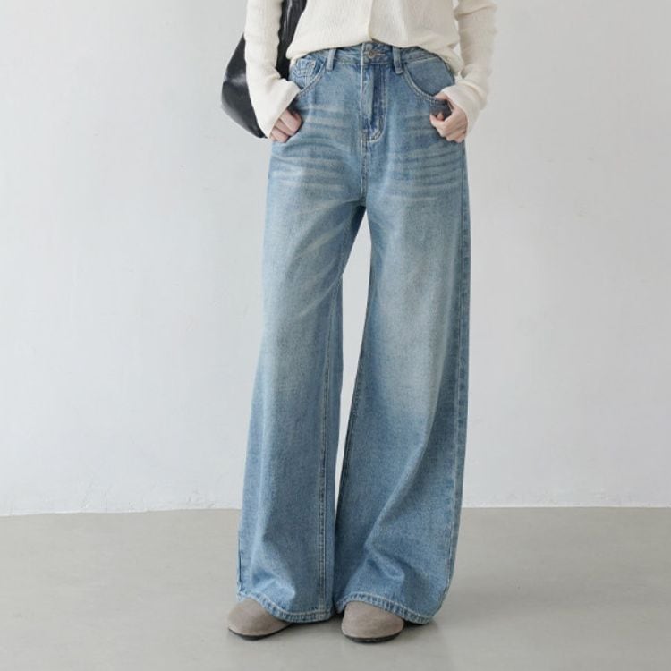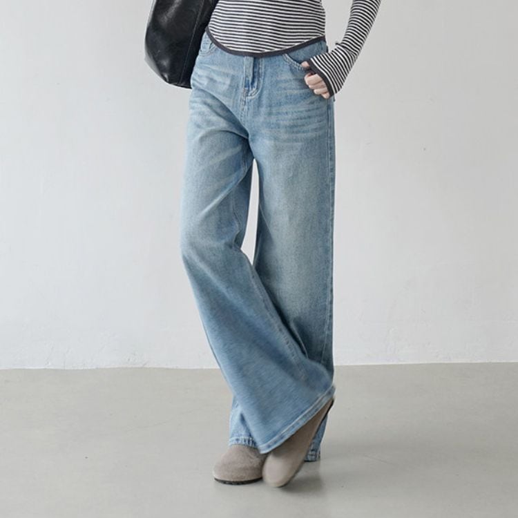 ゆったりとしたシルエットが魅力のフルレングスデニム。