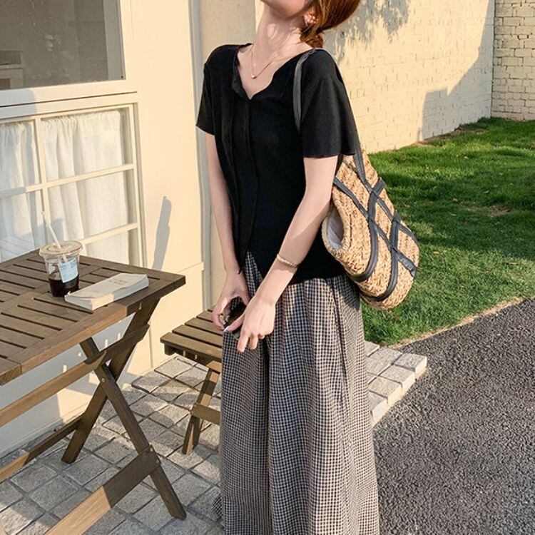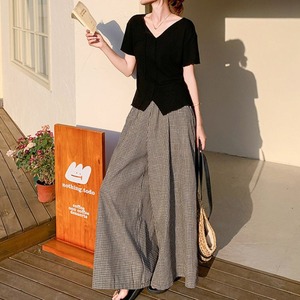 顔周りをすっきり見せてくれる絶妙な開きのVネックカットソーは、裾に施されたさりげないスリットデザインが、お腹周りをさりげなくカバーしつつ「こなれ感」を演出。