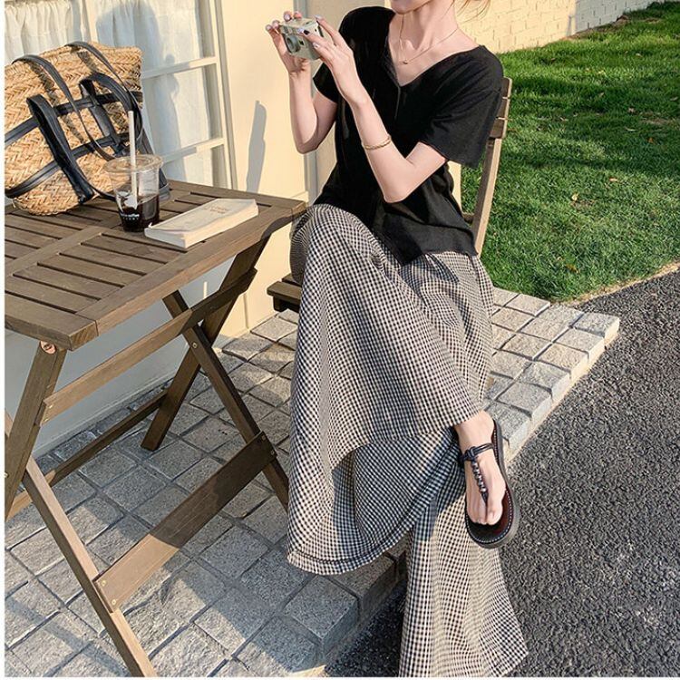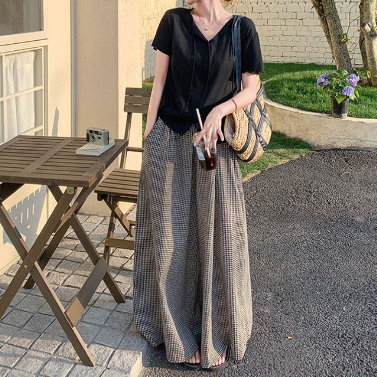 落ち着いたトーンのチェック柄パンツは、大人の女性でも気負わず取り入れられます。