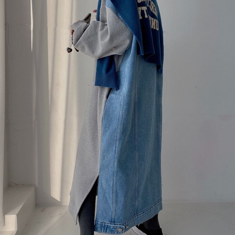 デニムの切り替えがデザインのポイントとなり、おしゃれな着こなしを簡単に実現できます。
